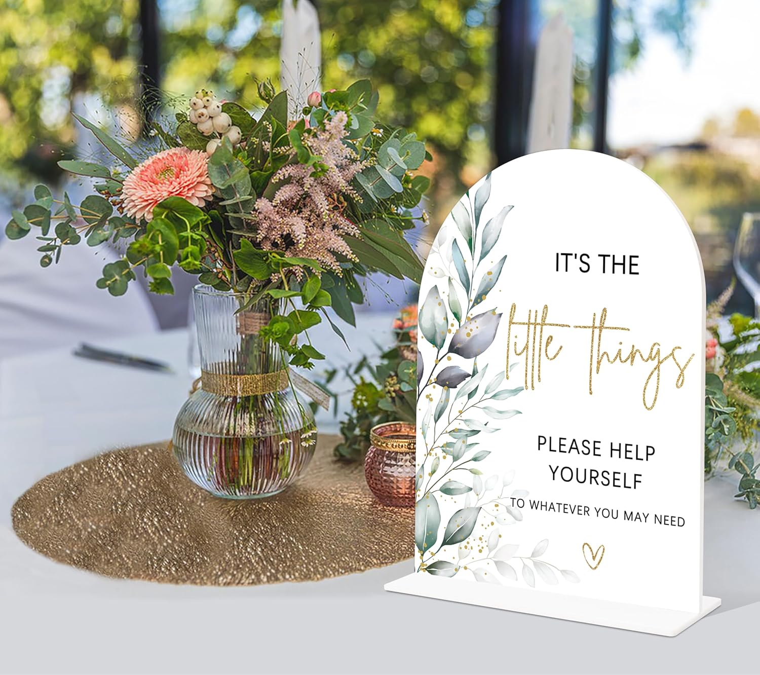 Acrylic Wedding Signs, Greenery Theme It's The Little Things Please Help Yourself Sign, Wedding Reception Signage, Bridal Shower Table Decor with Stand, Anniversary, Newlywed Events Supplies, 15