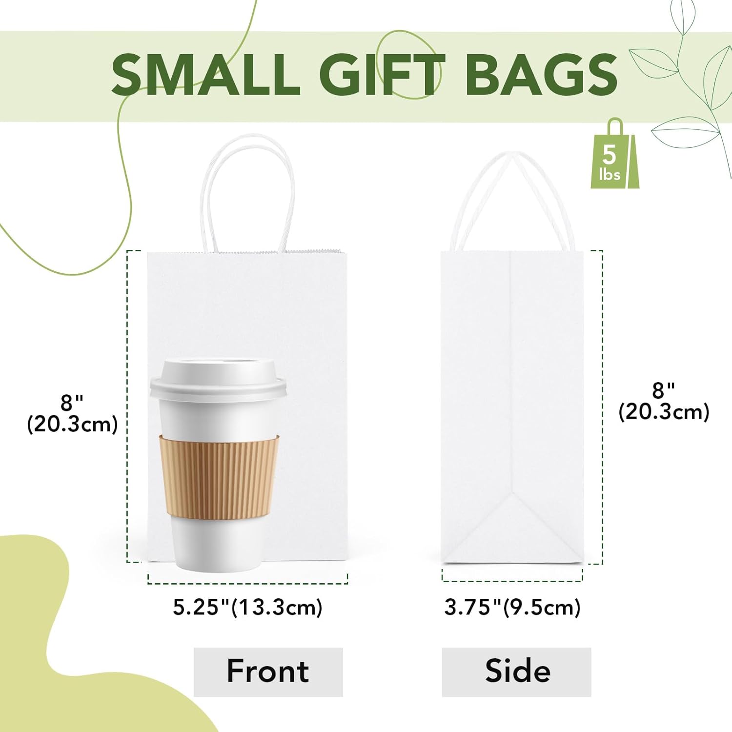 • Eco-Friendly Paper Bags:These 200 pcs white paper bags are made from recycled kraft, biodegradable and recyclable. The 5.25x3.75x8 Inch size fits small items, perfect for eco-conscious gifting or small business use, blending sustainability with practicality.