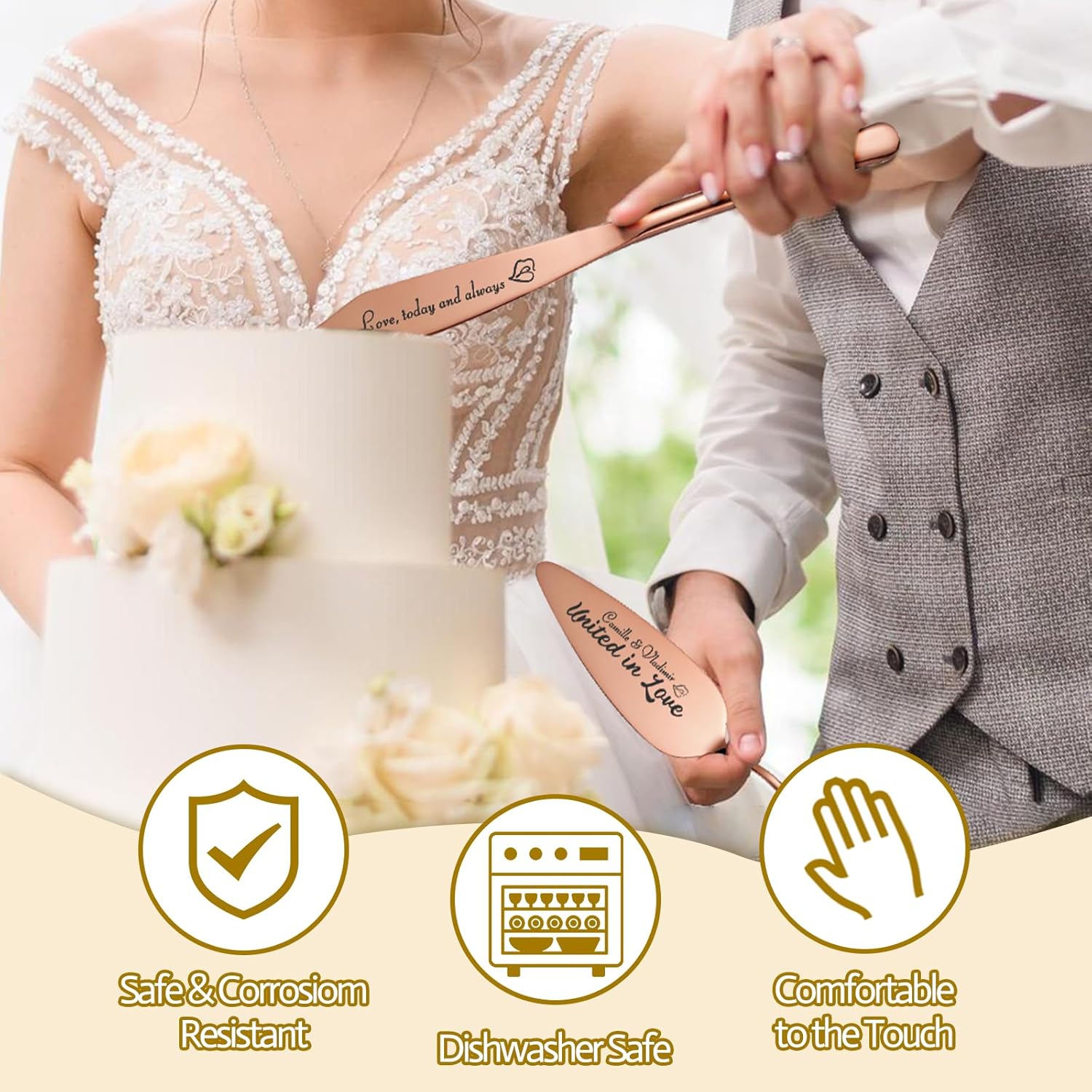 Personalized 4 Piece Wedding Cake Cutting Set, Custom Names Cake Knife and Server set with Forks, Anniversary Birthday Bridal Wedding Registry Gifts (Rose gold)