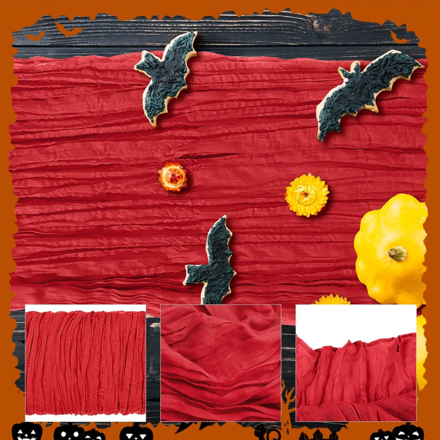 12 Pack Cheesecloth Table Runner 10Ft Christmas Gauze Boho Table Runners for Wedding Decor Bridal Shower Decorations Baby Shower Party(35" x 120")(Red)