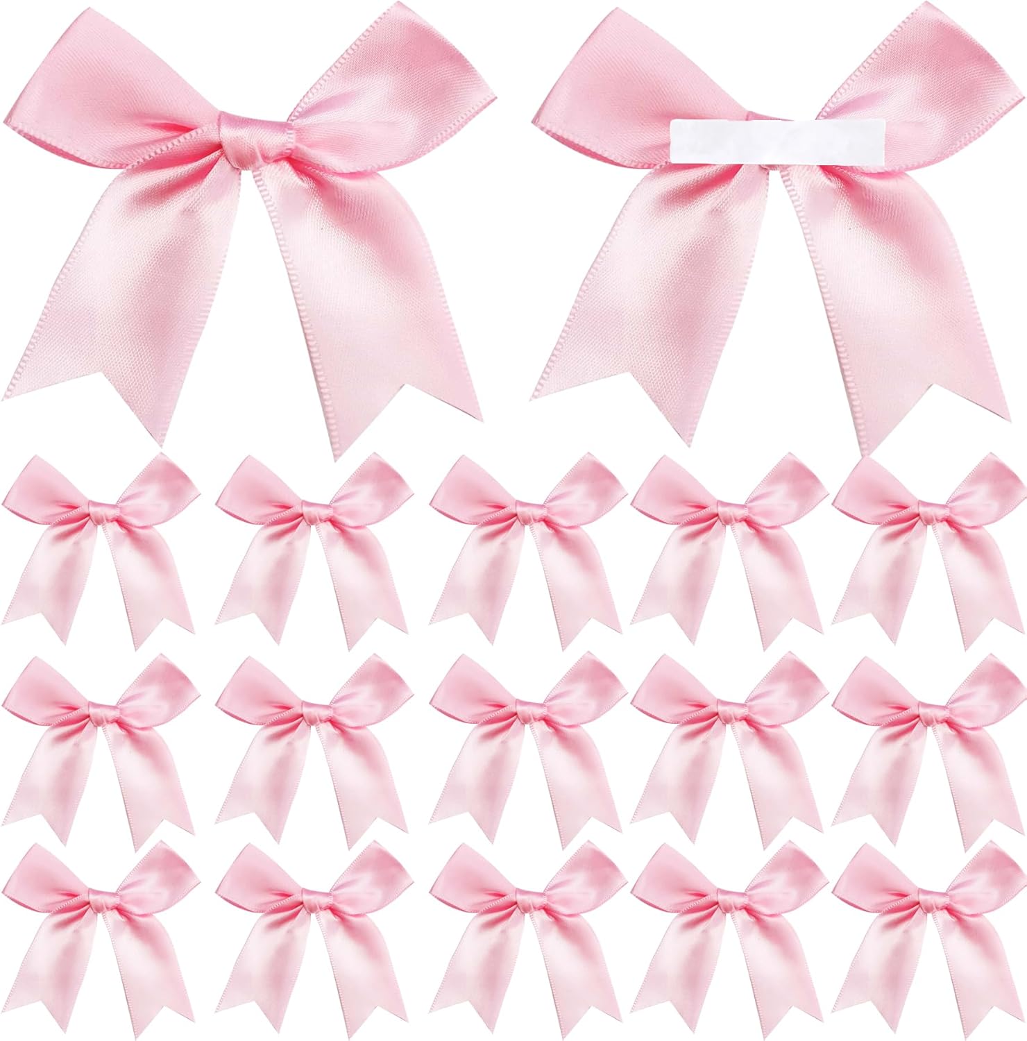 50 Pieces Gift Wrap Bows Premium Satin Ribbon Bows 3.3 Inch Craft Bows for Gift Wrapping DIY Treat Bags Holiday Gifts Bag Party Decorations, Wedding Decor Christmas Birthday Presents (Light Pink)