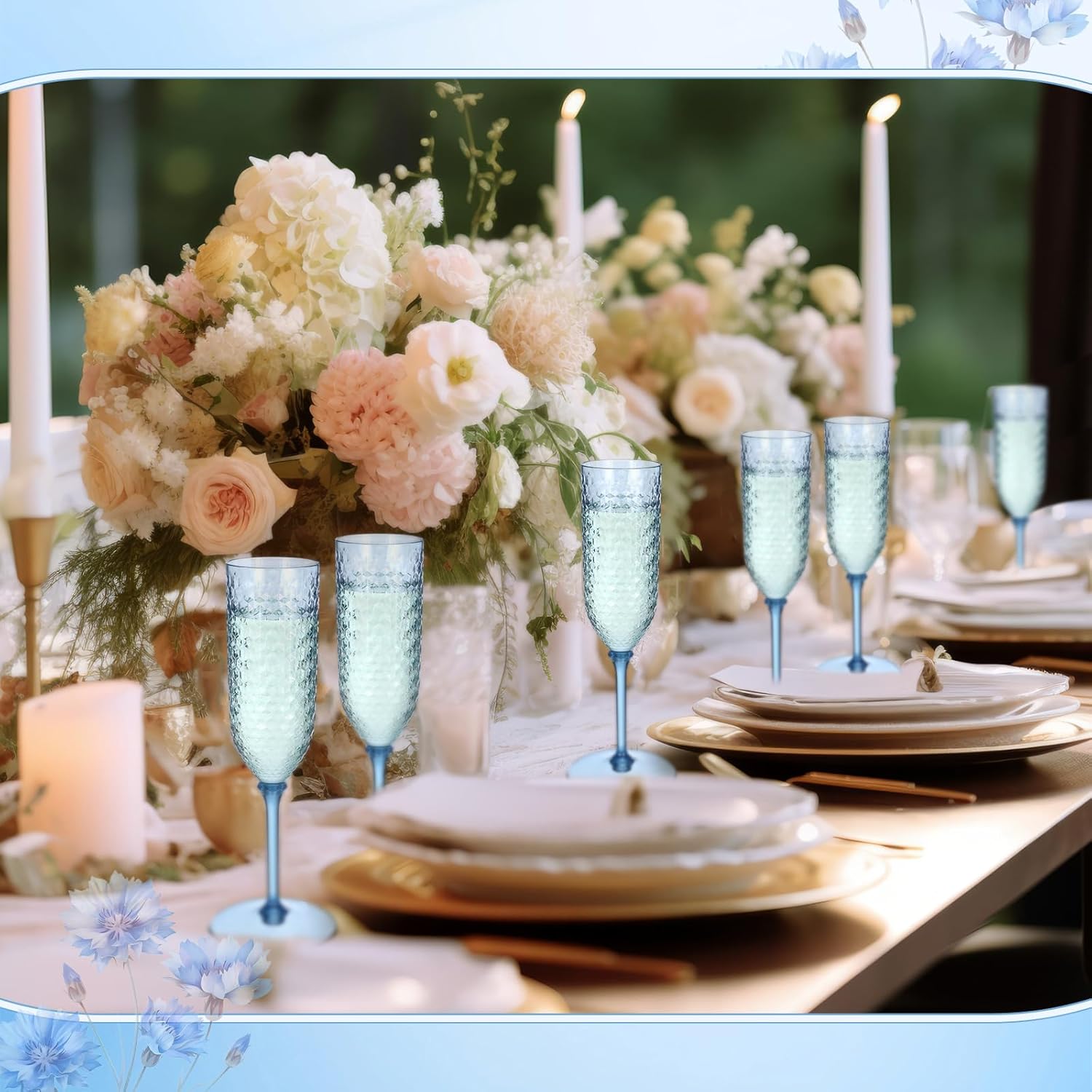 Remerry 24 Pack Detachable Plastic Champagne Flutes 5.5 oz Champagne Glasses Bulk Disposable Mimosa Glasses Reusable Wine Cups for Wedding Toasting Baby Shower Birthday Party New Years (Blue)