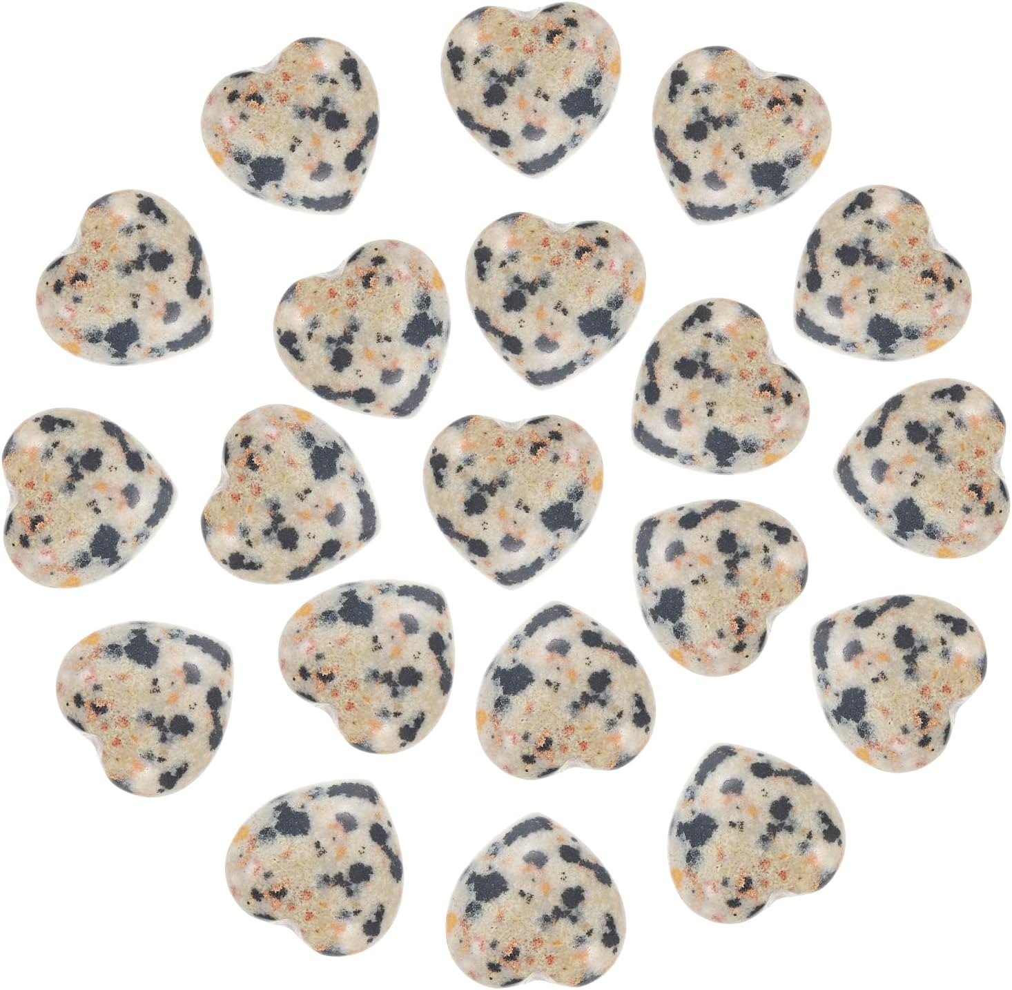 PATIKIL 20 Pcs Natural Heart Shaped Crystal Stone, 0.6 Inch Mini Polished Love Gemstone Crystal, Pocket Rock Engraved Worry Stones for Women Gifts Meditation, Spotted Black