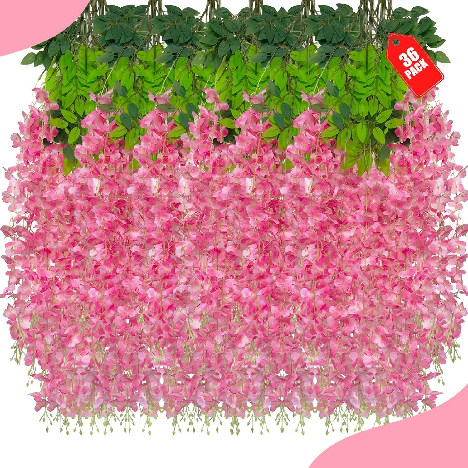 36 Pack Dark Pink Wisteria Hanging Flowers, 3.44 Ft Fake Hanging Flowers, Artificial Wisteria Garland Vines for Wedding Room Backdrop Outdoor Patio Garden Decoration