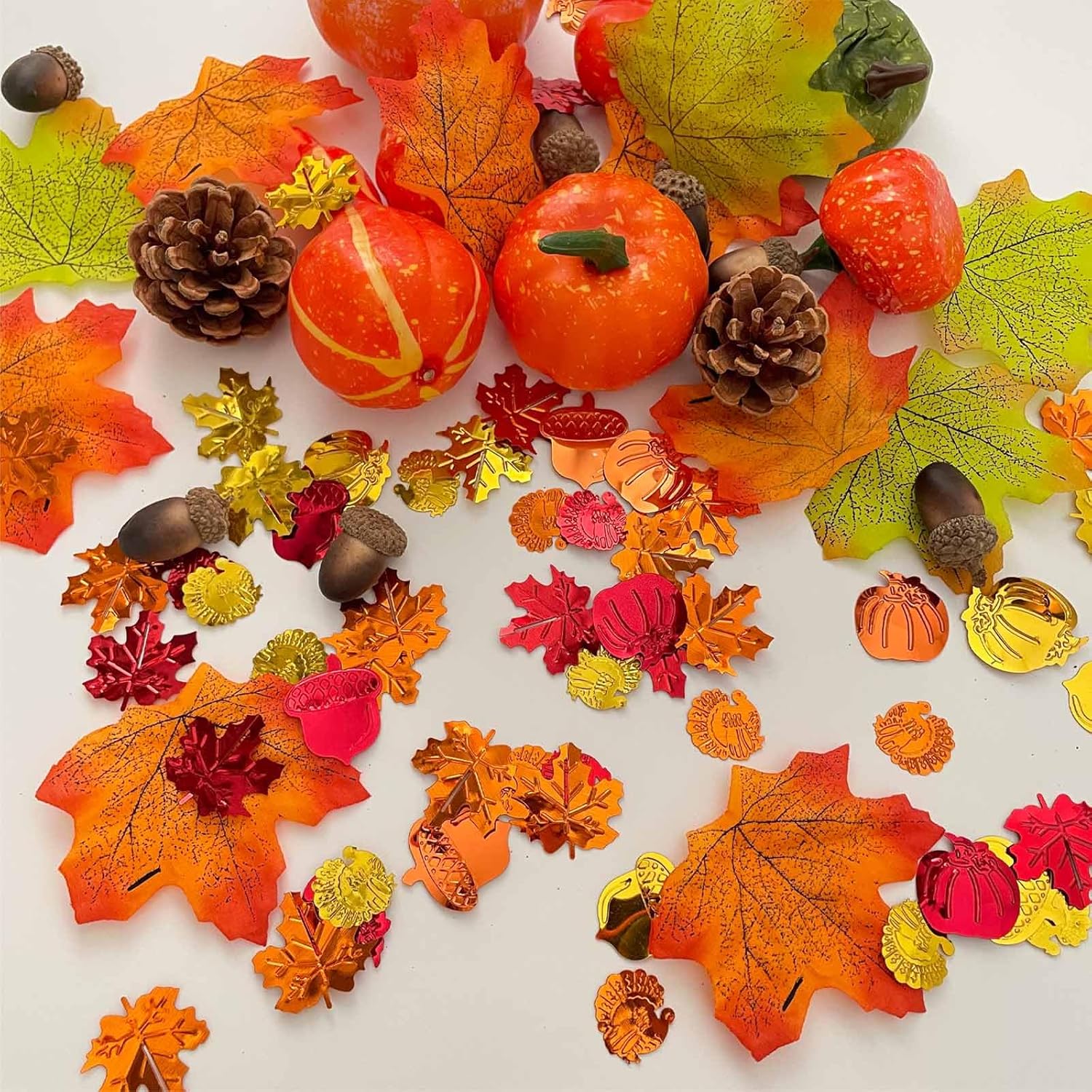 Fall Confetti - Thanksgiving Decorations, Thanksgiving Maple Leaves, Turkey, Pumpkin, Pinecones Sprinkles for Table Decorations and Fall Party Supplies