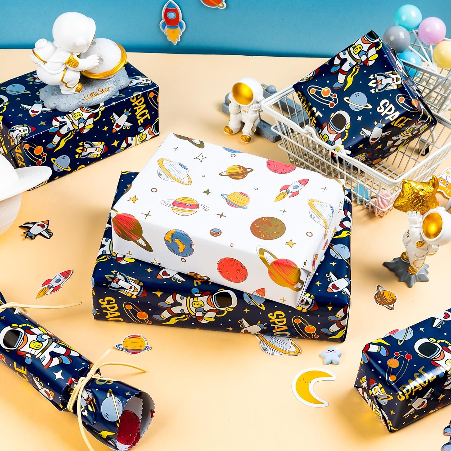 • Perfect for Kids’ Birthdays & Beyond: This Children's Space Wrapping Paper turns any birthday party into an out-of-this-world adventure. Ideal for space-themed celebrations, classroom parties, or imaginative surprises for your little explorer