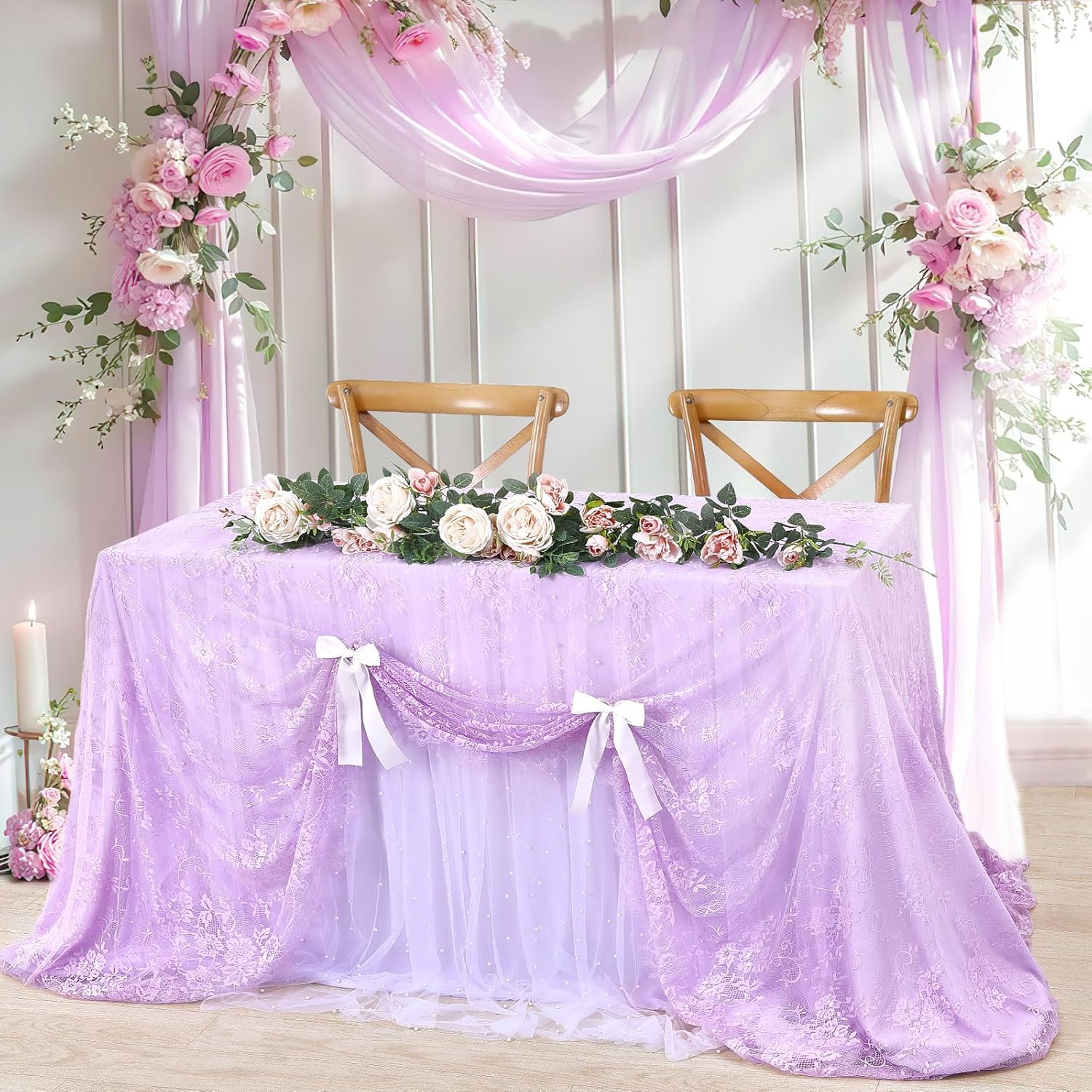 • πŸ‘ Widely Used: The embroidered white tablecloths perfect decor for boho wedding, country wedding, romantic candlelight dinner, baby shower, bridal shower and can also be used as a dresser scarf, coffee table linen or everyday use. You can also use it for DIY design, convert the lace table cover into gift bows, chair sashes, wedding tulle and decorations.