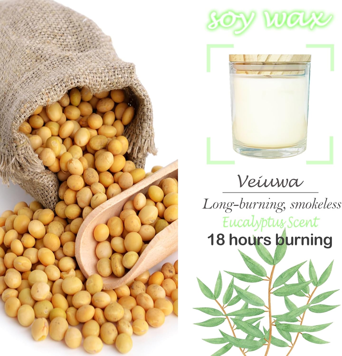 • 🪔🪔LONG BURNING TIME: Our soy candles are made of high quality glass and burn-resistant candles, each one can last up to 24 hours and give off a light eucalyptus scent, which makes it long lasting to create an elegant atmosphere for you
