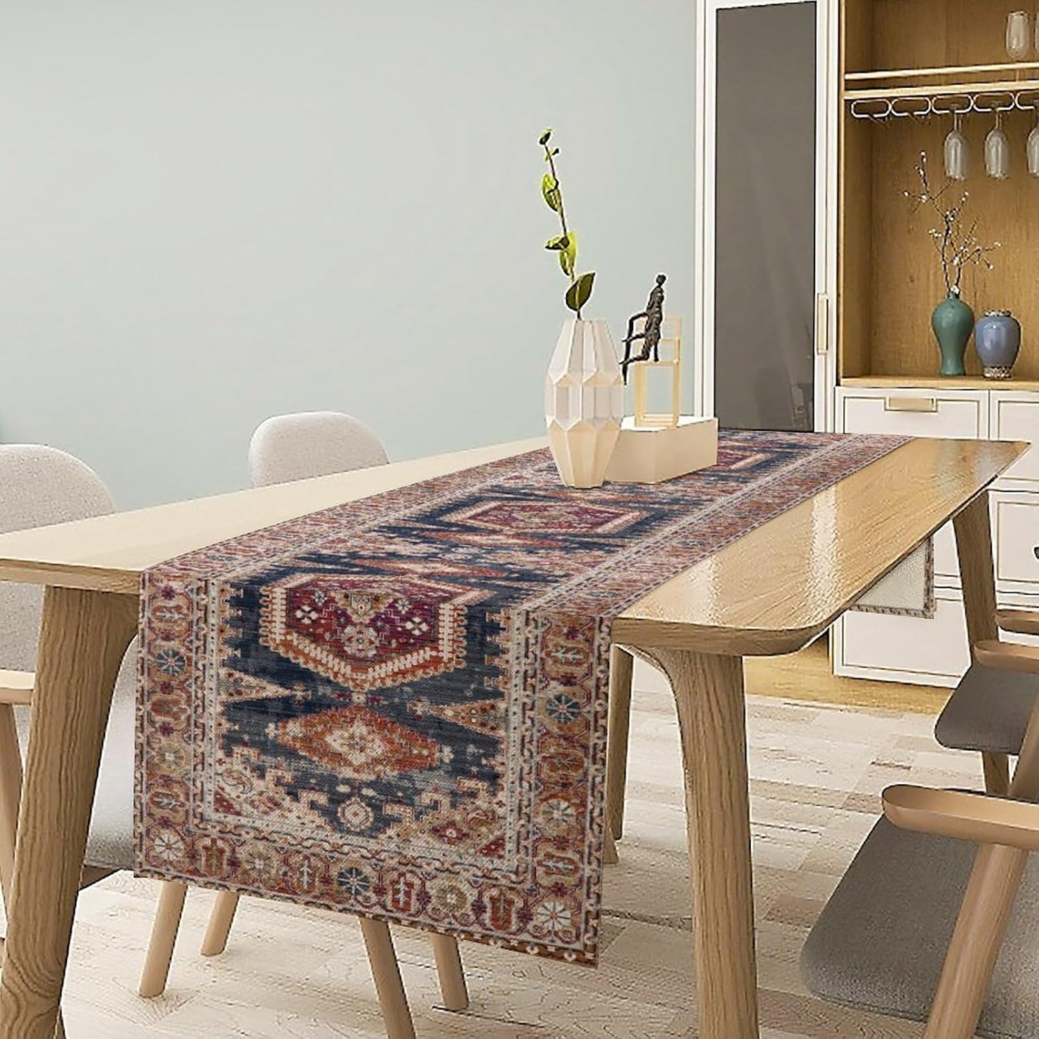 Vintage Boho Table Runner,Flower Geometric Design Rustic Farmhouse Table Runner for Home Farmhouse Kitchen Table Dining Coffee Room Garden Party Wedding Decor 13x72in