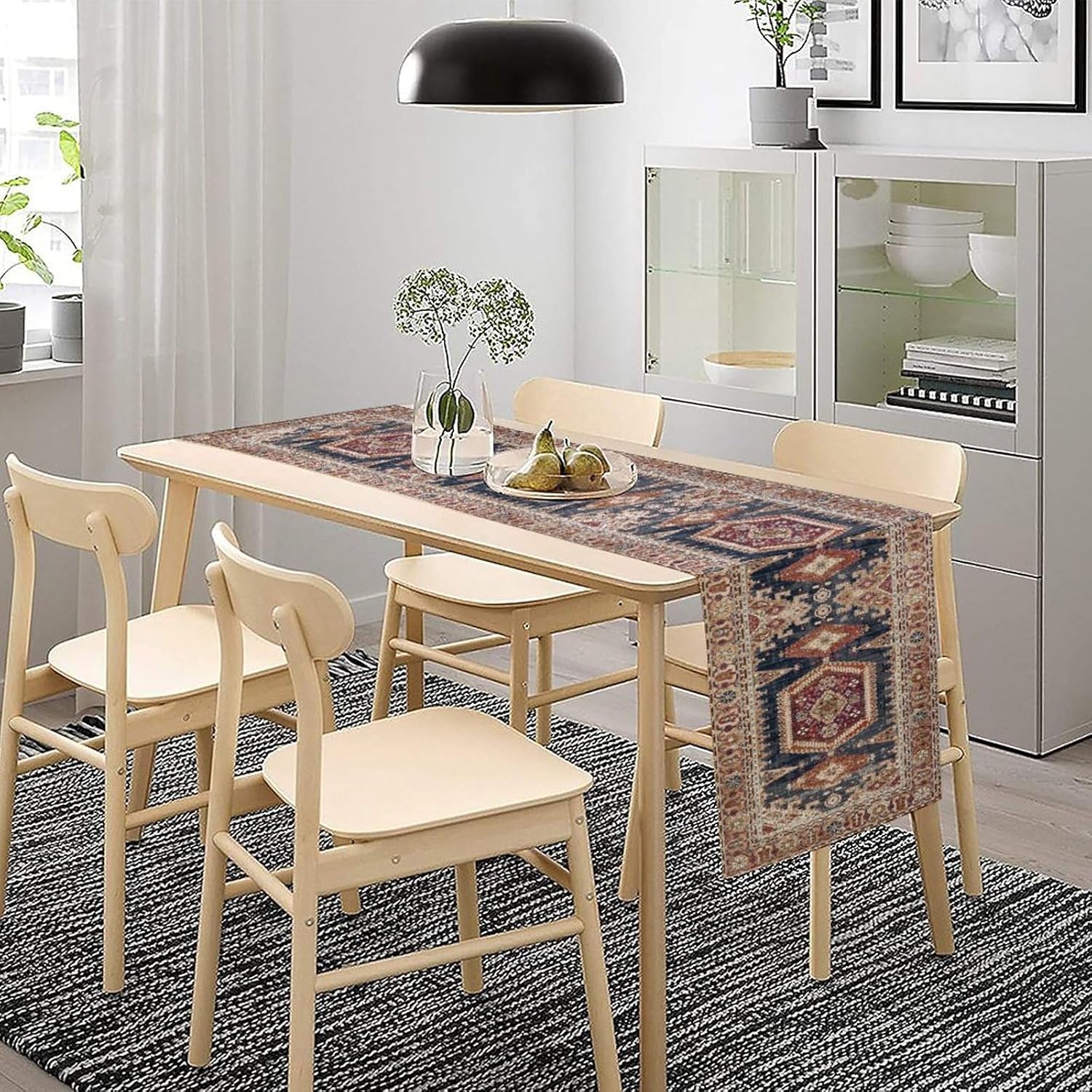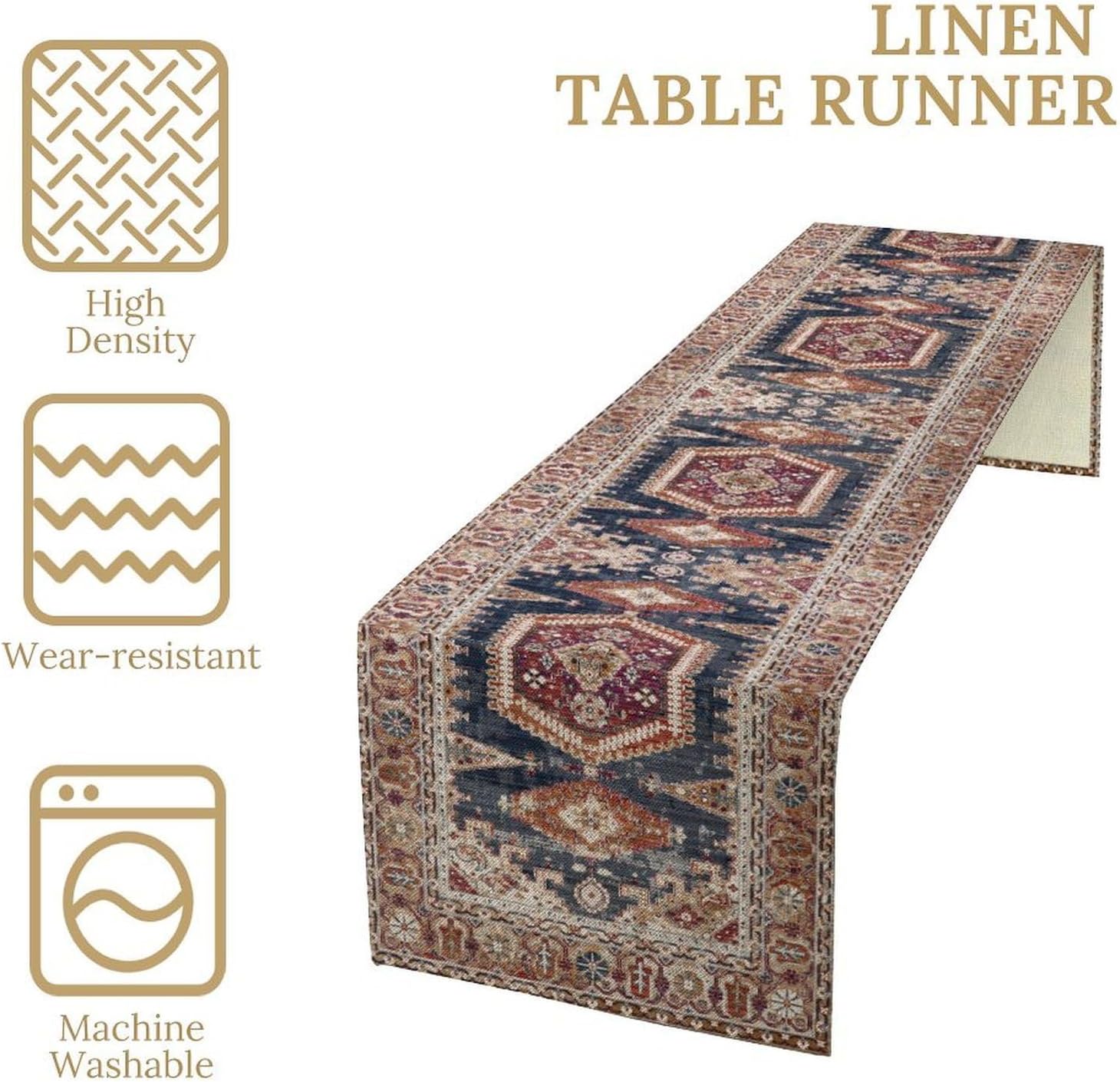 Vintage Boho Table Runner,Flower Geometric Design Rustic Farmhouse Table Runner for Home Farmhouse Kitchen Table Dining Coffee Room Garden Party Wedding Decor 13x60in