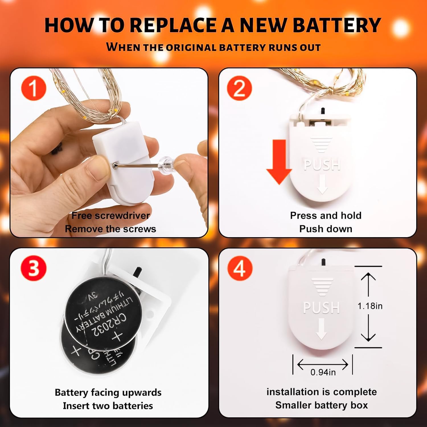 • 【Battery Powered】: Each set of lights powered by 2X CR2032 batteries( included and can be replaced). Although these support more than 72 hours continuous working, the actual use time will vary with the temperature and humidity of the environment. Small battery case (2*1 inches) is with on/off switch, very easy to hide into your design works. These are great for themed parties, sleepovers, or center pieces. Screwdriver included for easy operation.