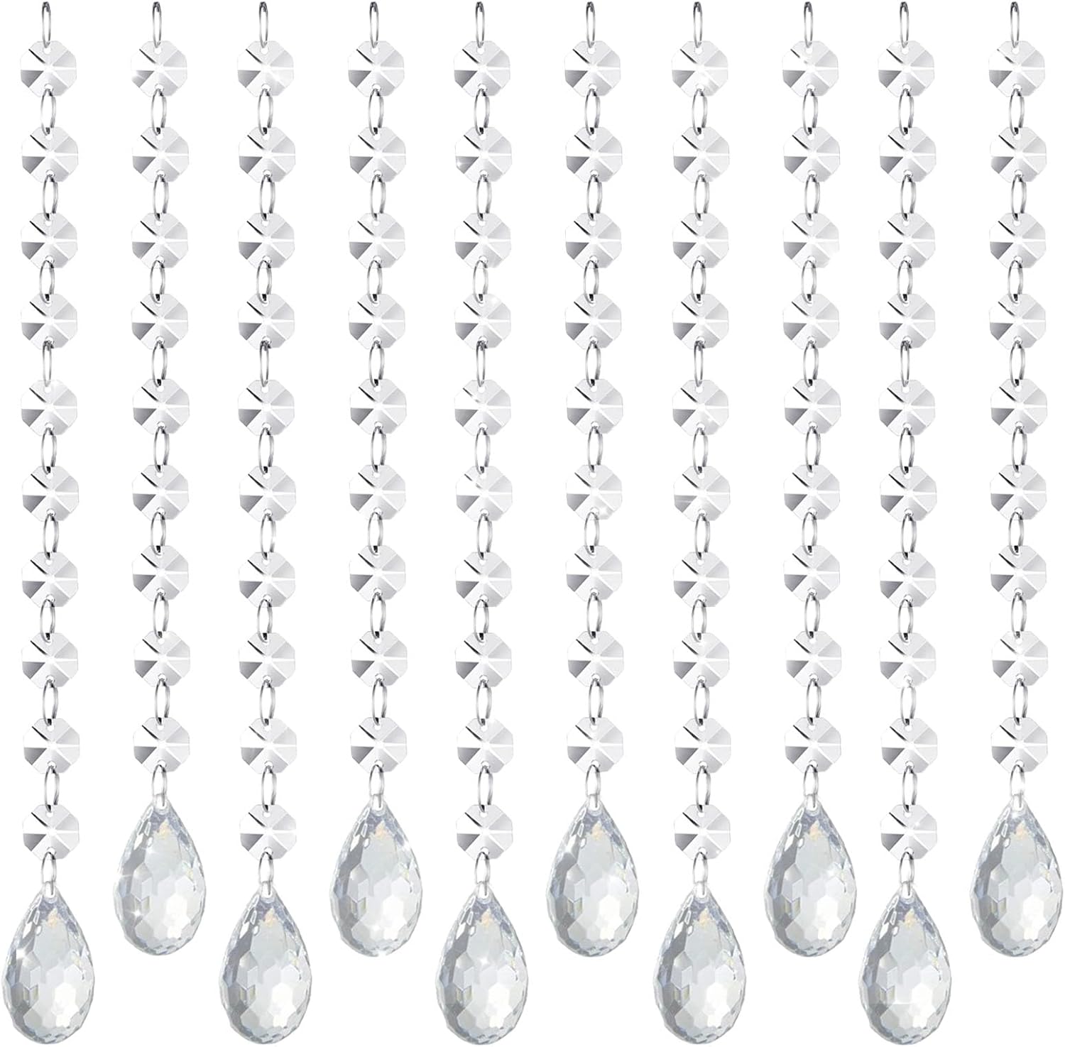 • 【Product Include】You will receive 10 pcs of crystal garland strands. The clear octagon bead is 14mm each; The metal split ring is 12mm each; The teardrop crystal is 30mm x 15mm; total 10 Strings, one string is 3.3ft long; the total length of the crystal garland strands is 33ft. The crystal octagon beads are connected by metal split rings and are easy to disassemble, so you can adjust the length according to the decoration needs.