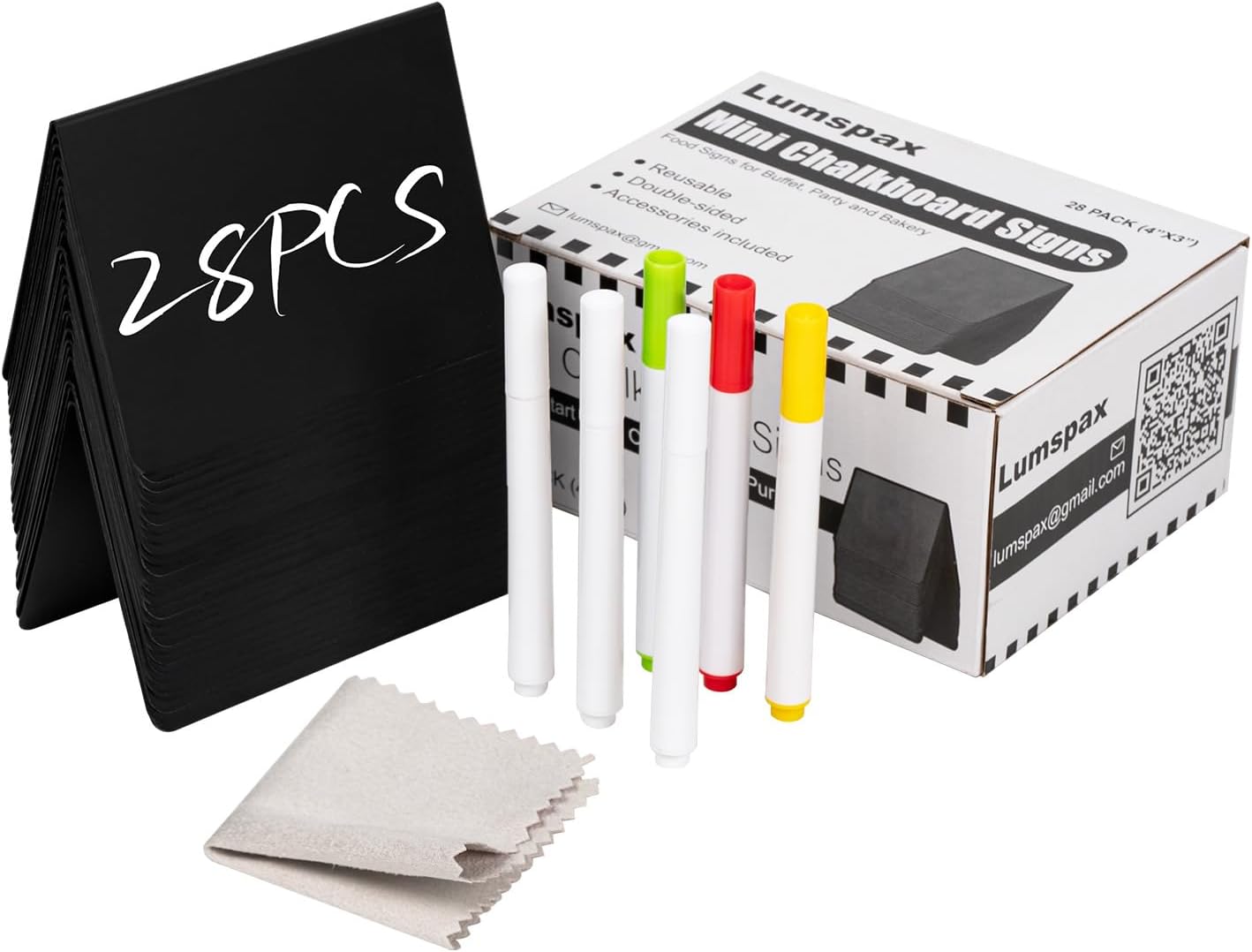• Great Value Combination:Get 28 reusable mini chalkboard signs, 6 liquid chalk markers, and 1 cleaning cloth—all in one incredible set that delivers maximum value for your money
