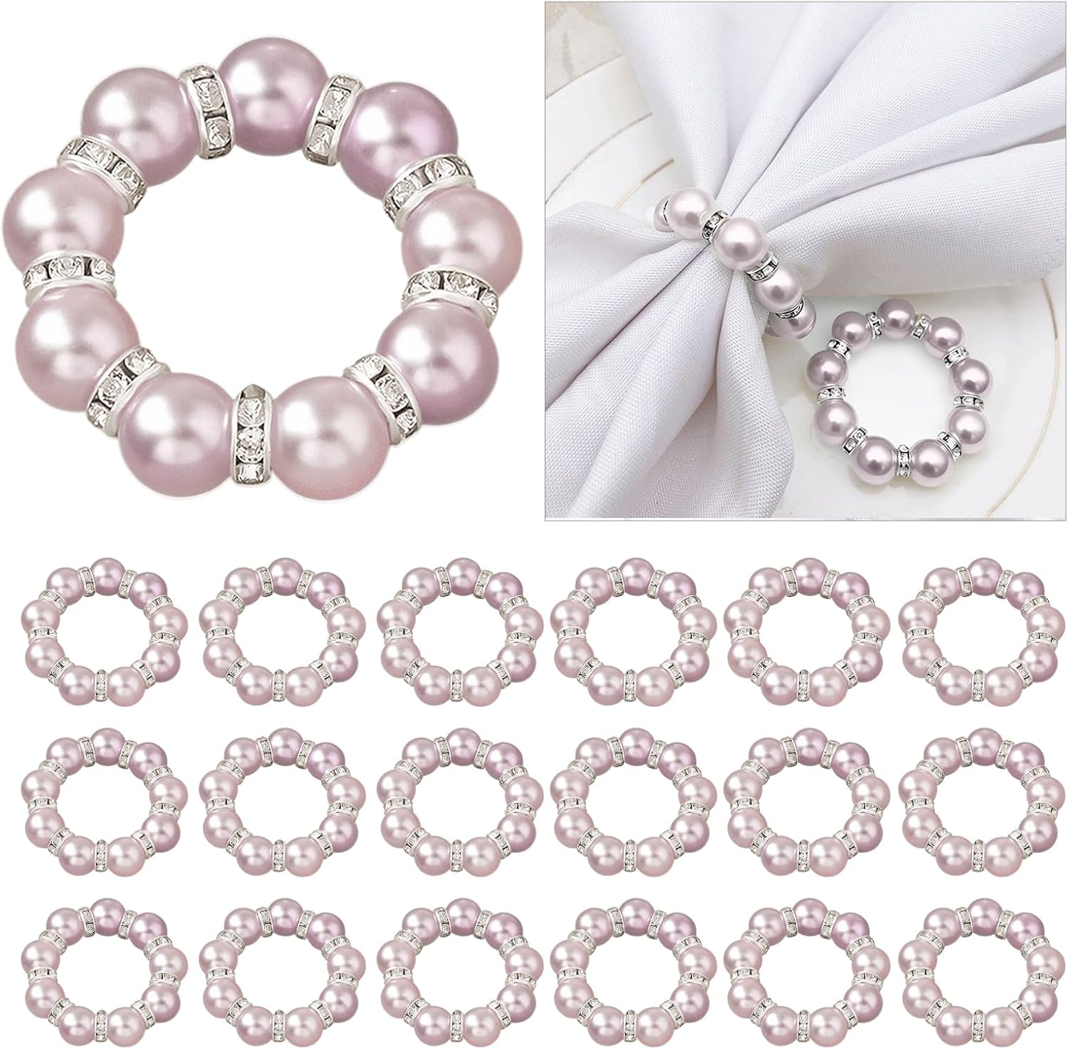 20Pcs Pearl Napkin Rings, Pink Beaded White Silver Round Buckles, Set of 6, Wedding and Formal Dinner Table Decor (20, Pink)