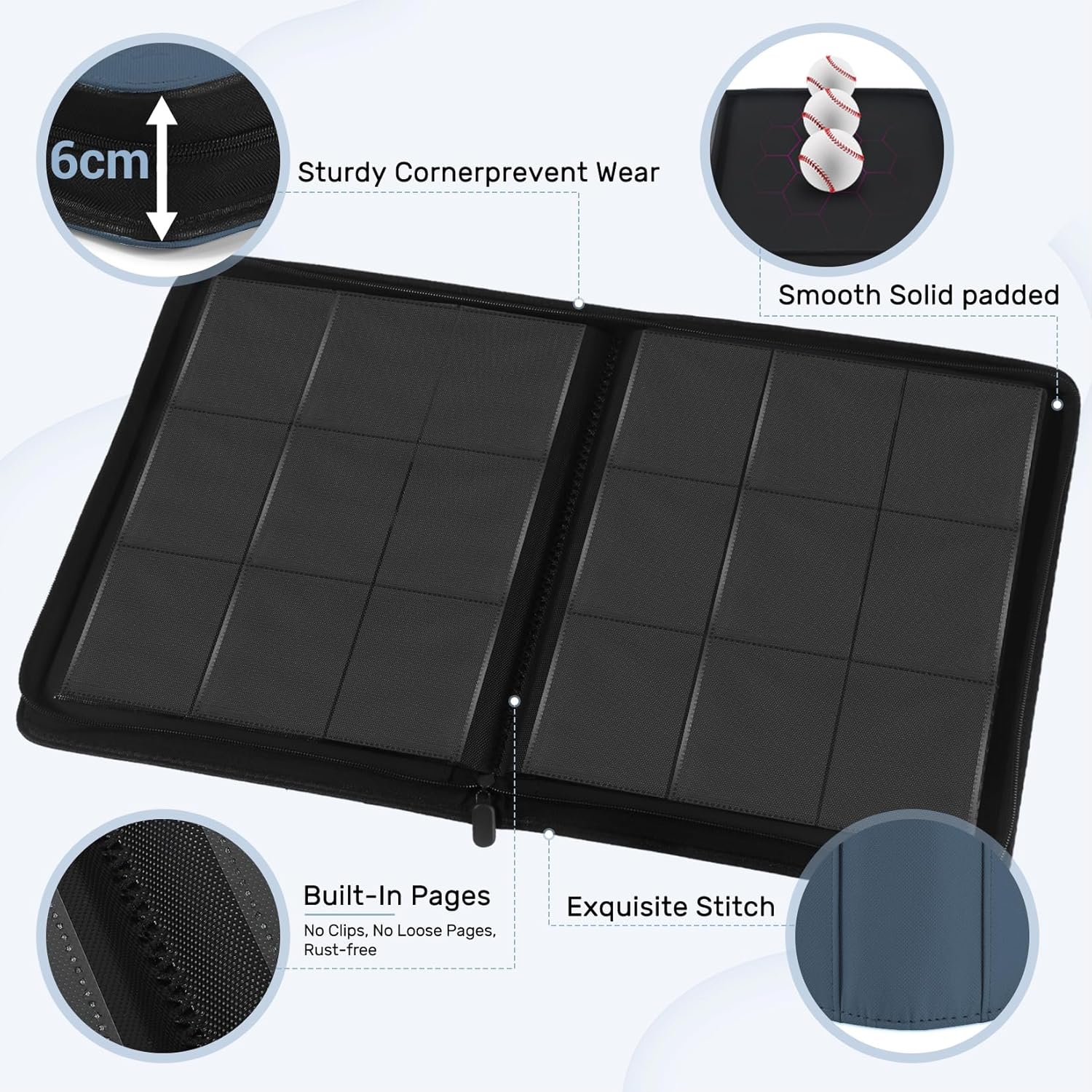 • Side Loading & Ultra-Clear Pages: Featuring archival-grade acid-free & non-PVC materials, this side-loading card binder prevents fading and card stickiness while its ultra-clear anti-scratch sleeves showcase holofoil details and securely lock cards in place—ideal for prolonged storage and collection display.