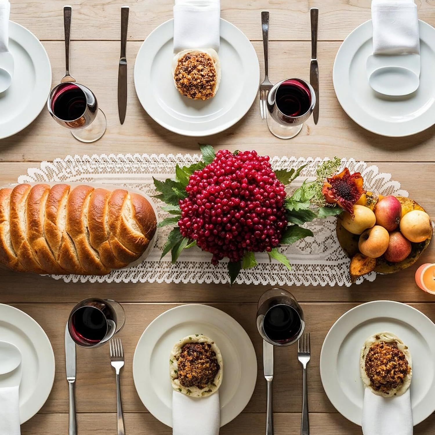 • Versatile Home Decor: Perfect for various settings, these lace table runners can adorn dining tables, coffee tables, dressers, and more. Suitable for weddings, tea parties, and holidays, they create a festive ambiance. Their rectangular shape fits tables seating 4-8 people, making them ideal for both intimate gatherings and larger celebrations