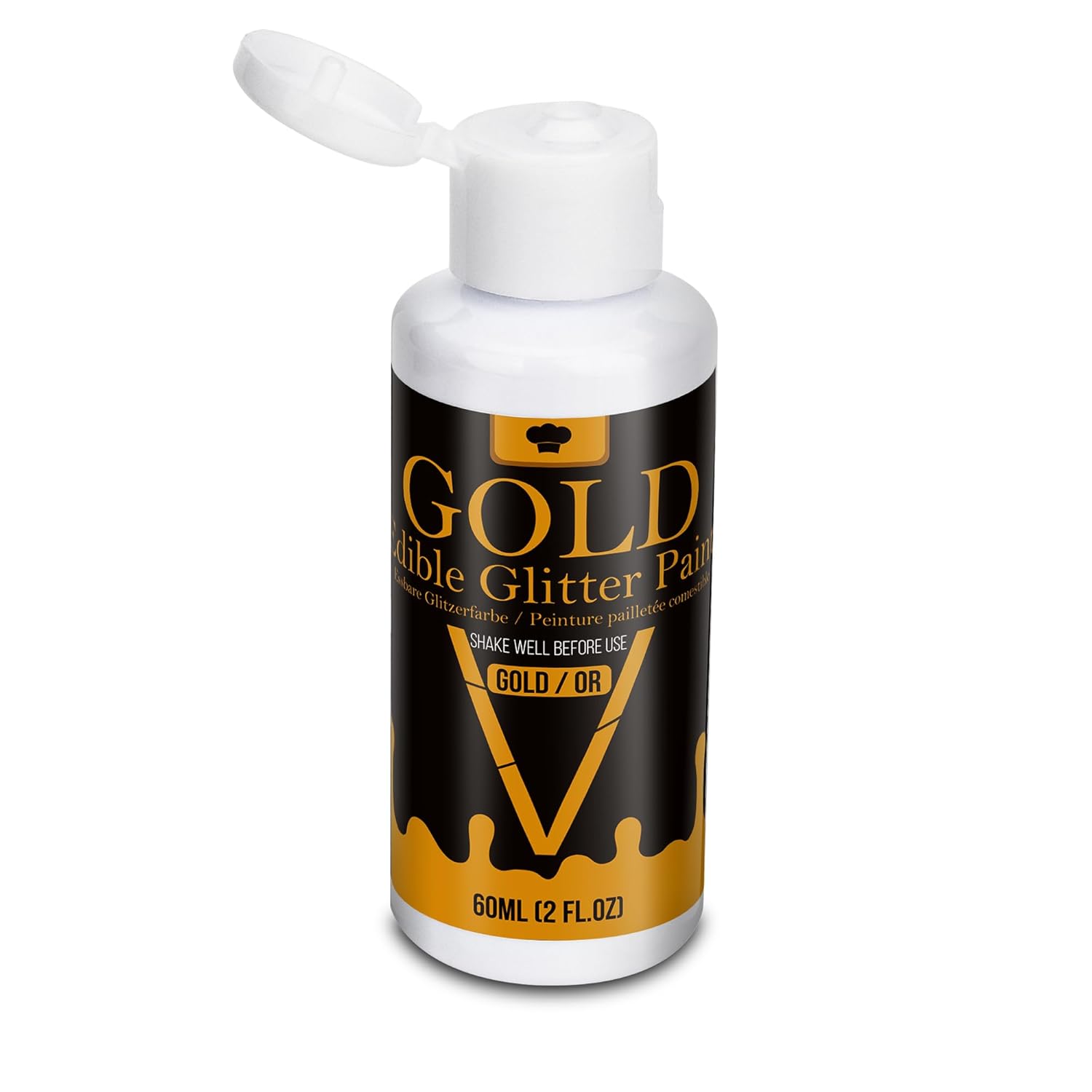 Edible Glitter Paint - 2 fl.oz / 60ml Food Safe Edible Gold Paint for Halloween Cake Decorating, Chocolate, Cocktail, Cupcakes - Gold Food Coloring Liquid Luster Dust for Candy, Drinks, Baking