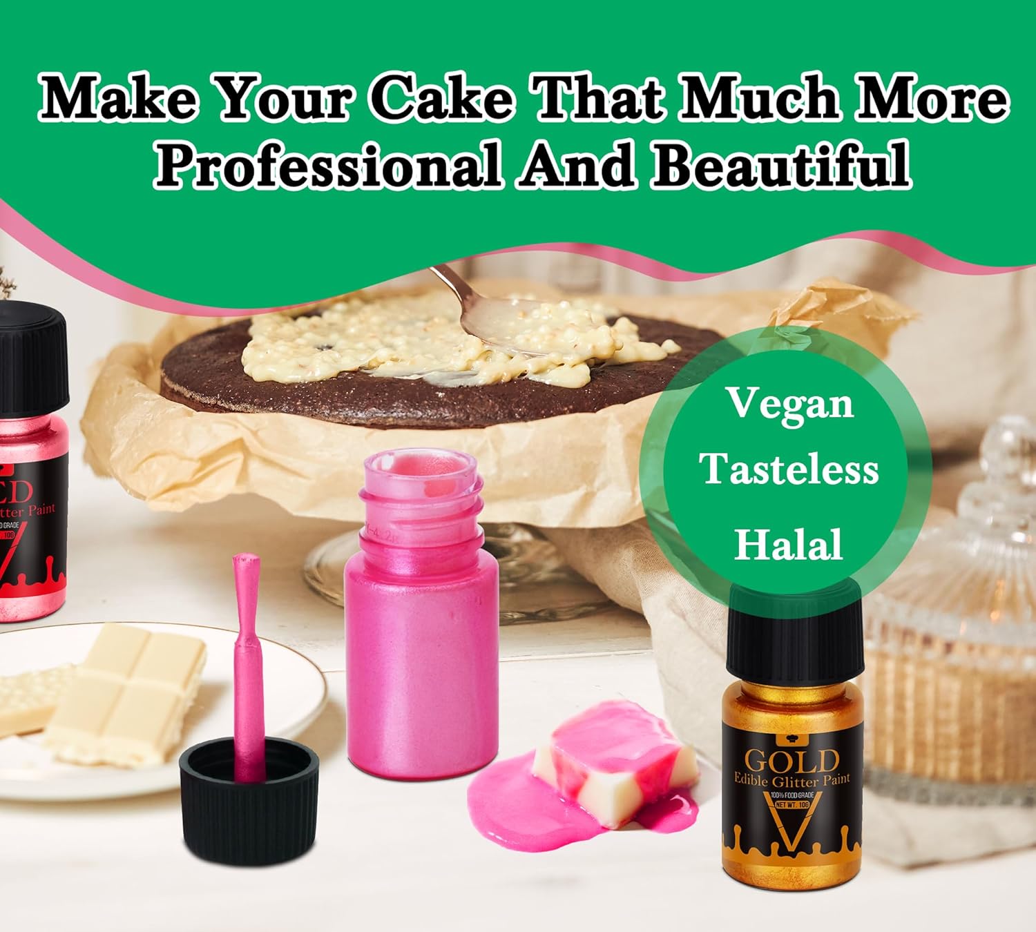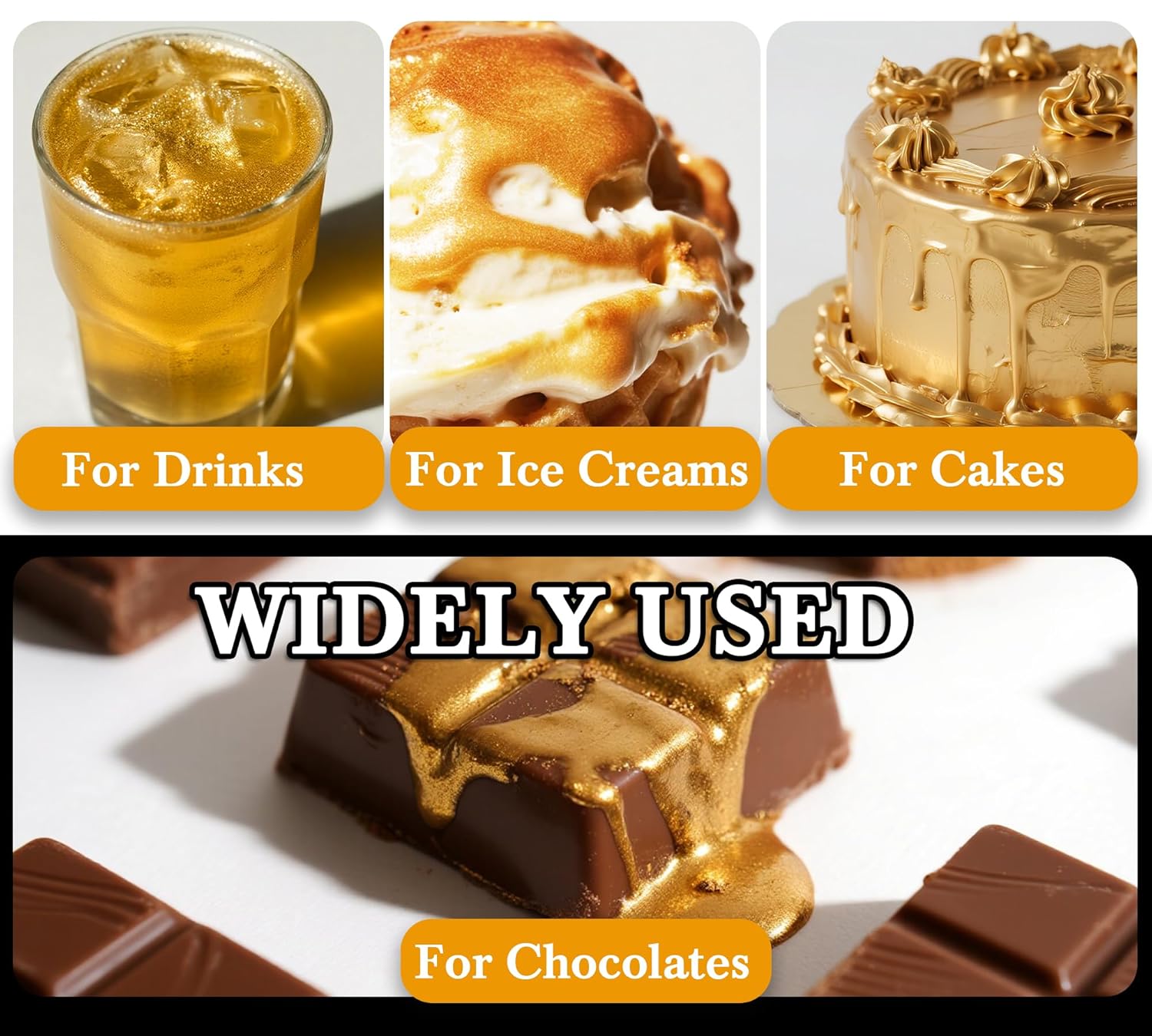 • Brilliant Metallic Effects with Edible Gold Paint: Create stunning high luster finishes on cakes, chocolates, and desserts using our edible paint. This edible gold paint delivers brilliant metallic shimmer without altering taste, perfect for professional bakers and DIY enthusiasts seeking a luxurious touch.