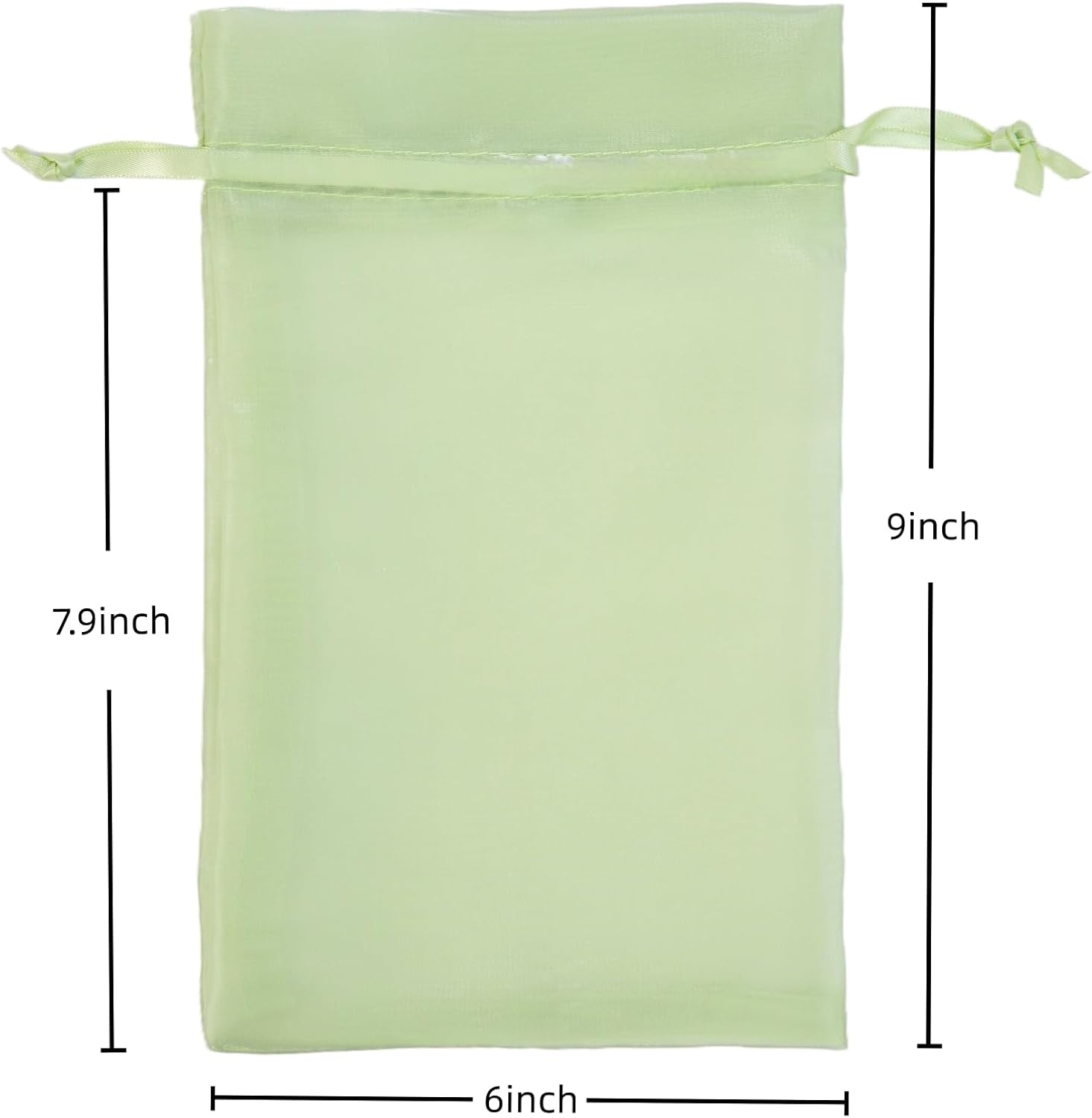 QIANF 20 Pcs Light Green Organza Bags 6X9 inch for Wedding Favors with Drawstring, Mesh Gift Bags Jewelry Pouch for Candy Bridal Shower Party Favor Baby Shower Christmas