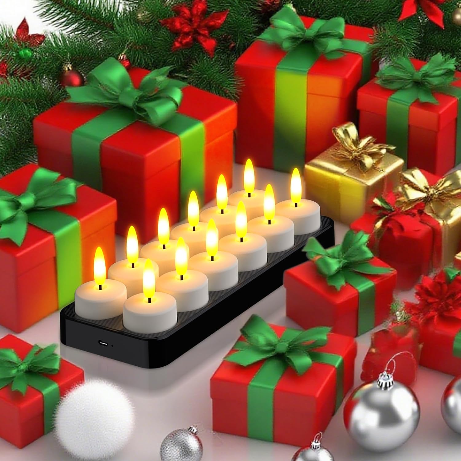 • Long-Lasting LED Performance:Built with high-capacity rechargable technology, these electric lights outperform conventional battery operated alternatives. The decorative tealights provide 60 hours of continuous runtime - ideal for extended Christmas celebrations, wedding centerpieces, or as a warmer glow for autumn nights and Halloween.