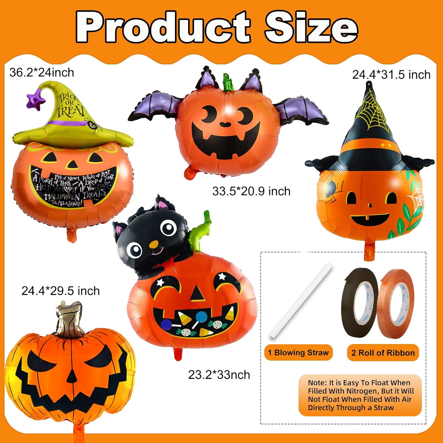 • Quickly Inflate, Safely Hang: This is a set of easy to inflate Halloween balloons, equipped with ribbons and blowing straws, easy to install and can be hung on the wall, door or ceiling immediately; durable foil balloons can stay inflated for days.