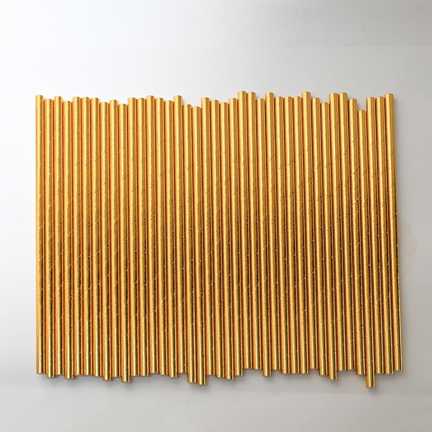 Gold Paper Straws, Disposable Drinking Straws for Graduation, Birthday, Wedding,Cocktail Party, 7.75" x 0.24" - 100 Pack