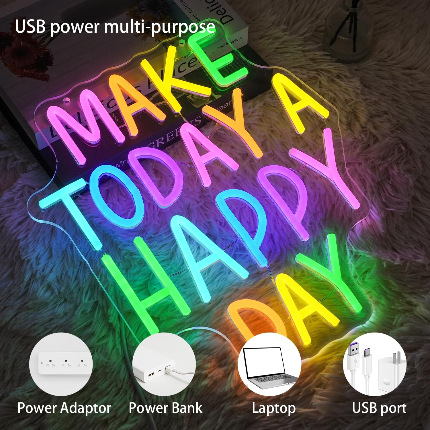 Make Today A Happy Day Neon Sign, Inspirational Colorful Letter Neon Light for Wall Decor, Dimmable Motivation LED Light Sign for Bar Cafe Restaurant Office Living Room Wedding
