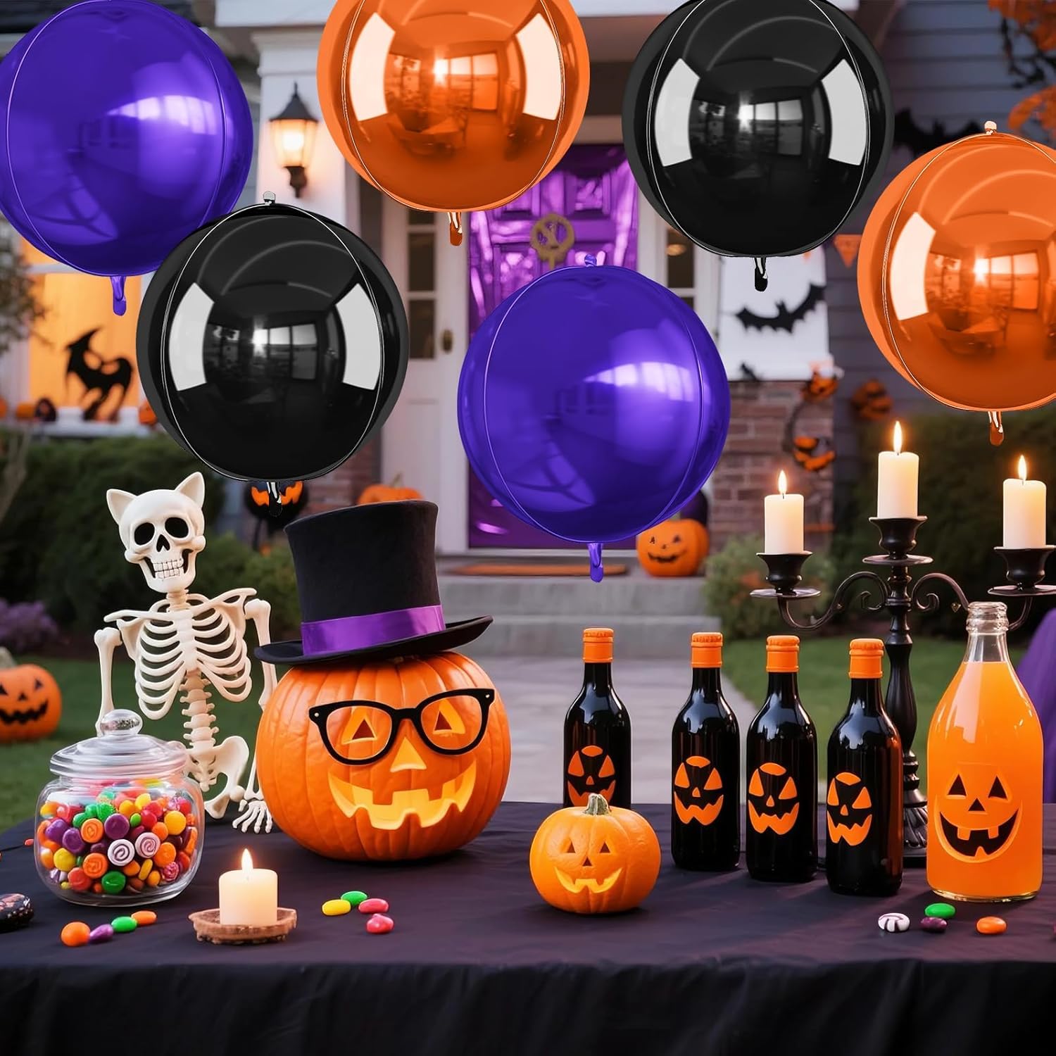 • Package: This halloween party decorations set includes 6pcs 22inch 4D round foil balloon, 2pcs black foil balloons + 2pcs orange foil balloons + 2pcs purple foil balloons+ 1 straw + 1 roll of ribbon. Ideal sizes and vibrant colors are perfect for enhancing your Halloween theme and creating a memorable ambiance.