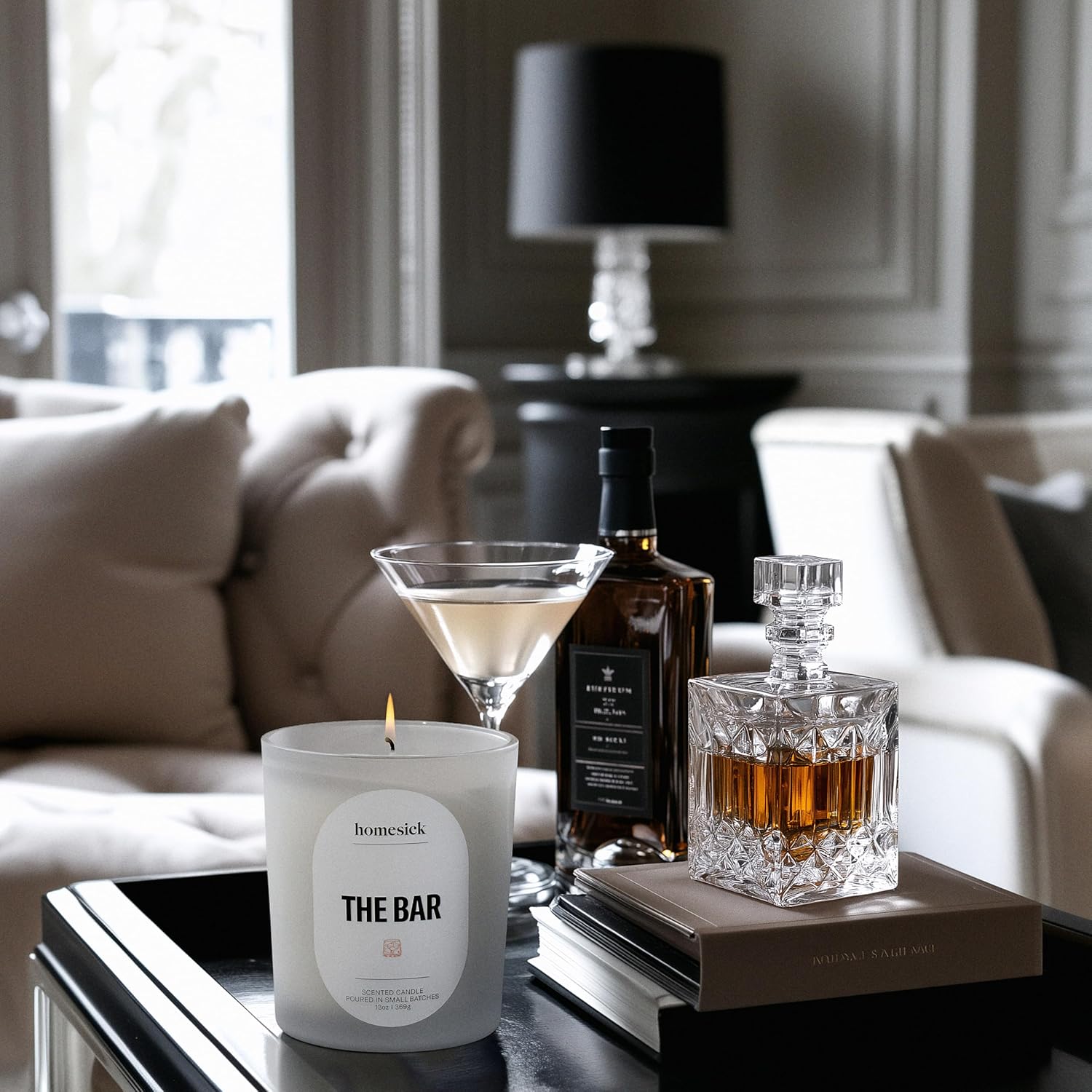 Homesick The Bar Scented Candle – 13 oz Soy Wax Candle with Organic Cotton Wick, 60–80 Hour Burn, Bourbon Vanilla Cedarwood Leather Scent, Reusable Glass Jar, Wedding & Engagement Gifts for Couples