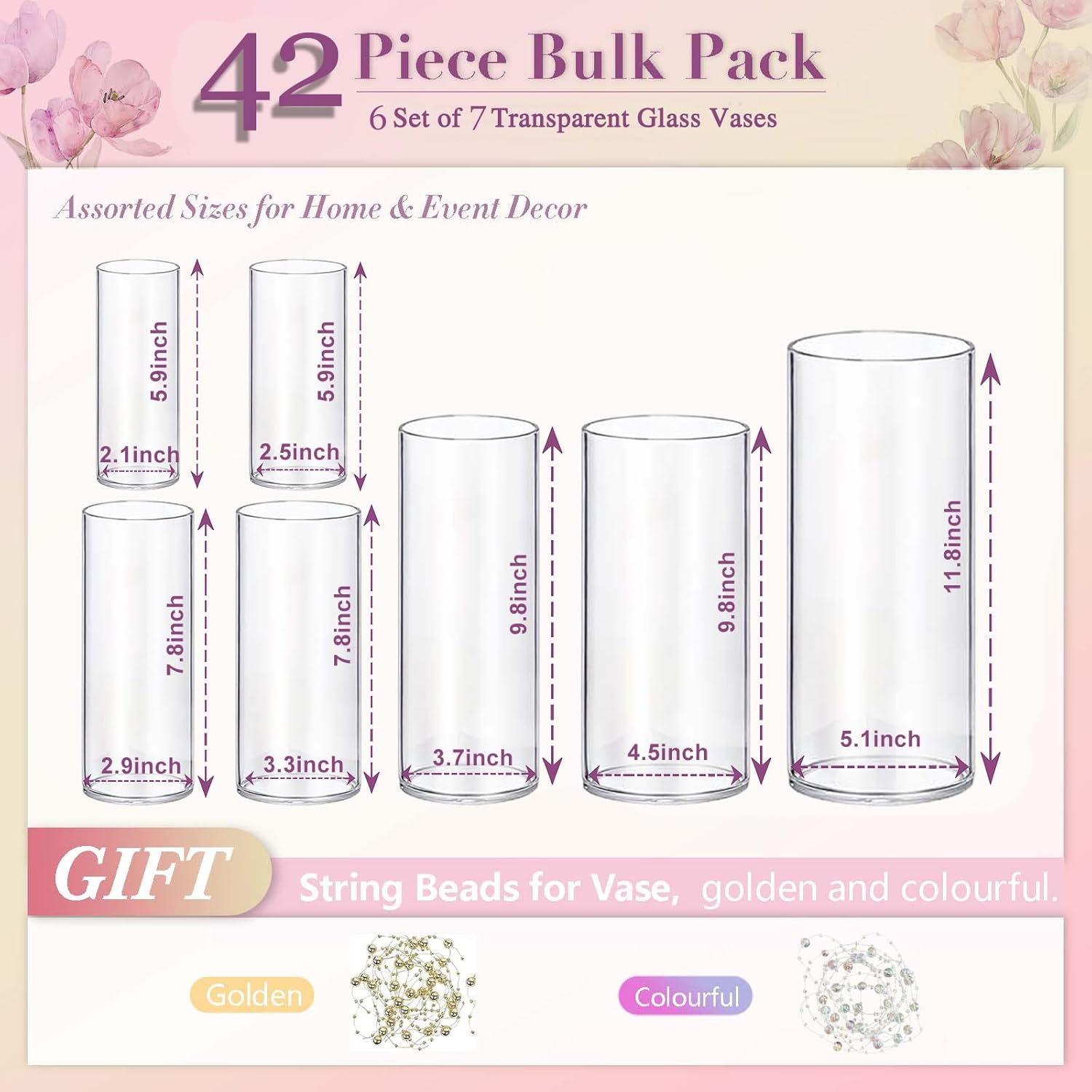 42pcs Glass Vase Cylinder Vases for Centerpieces Small Flower Glass Clear Vases Home Decor Centerpiece Table Flower Vase Decorations for Wedding Decoration&Holiday 7 Vases of Different Sizes