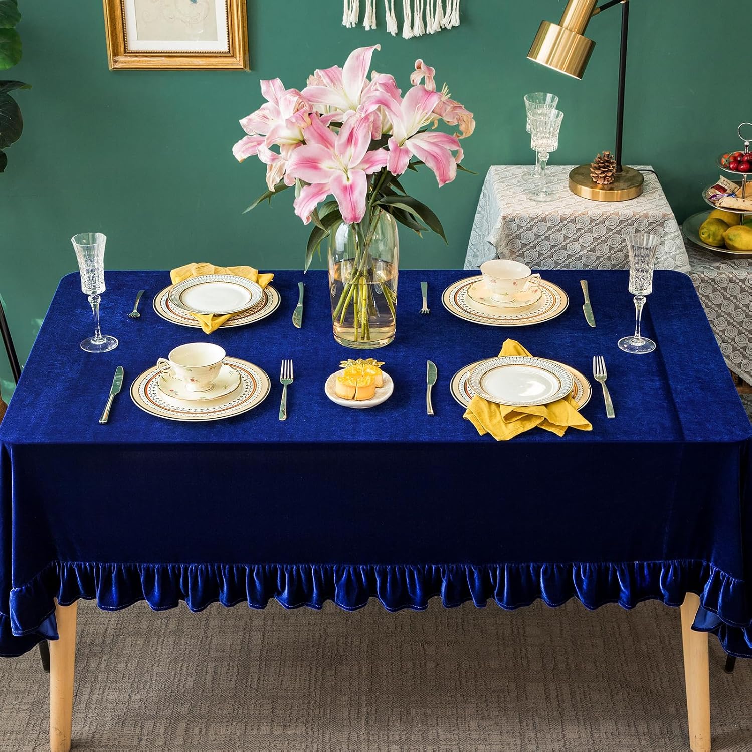 Velvet Tablecloth Luxurious Solid Rectangle Table Cloth,Oblong Retro Farmhouse Ruffle Tablecloths Washable Table Cover for Party Wedding Baby Shower Kitchen Dinning Tabletop Decoration