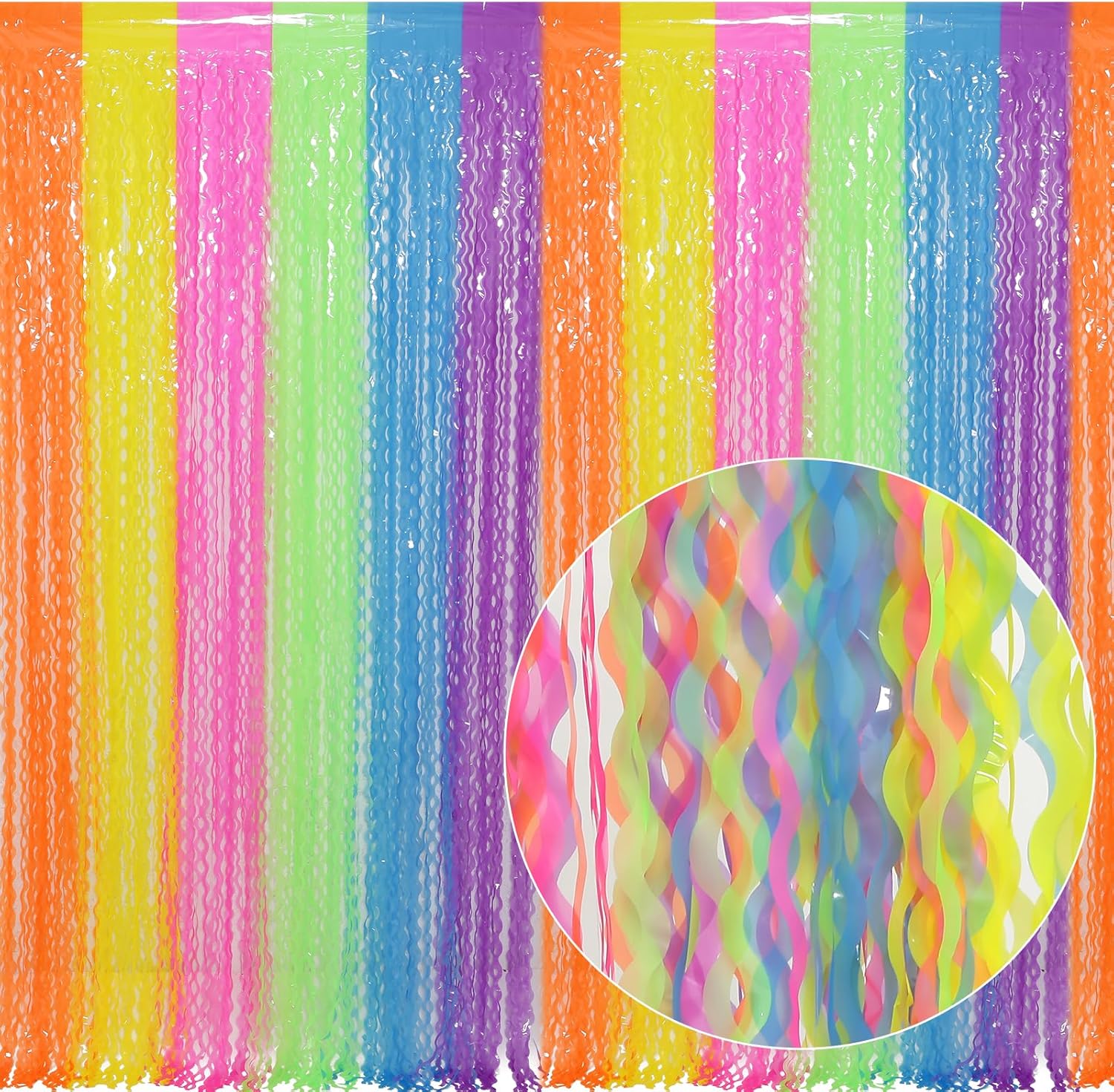 • 【LATEST Shiny Surface +Wavy Shape Tinsel Backdrop】The rainbow foil curtain backdrop is made of aluminium foil with shiny surface +wavy shape, good for adding sparkle as decorations for parties