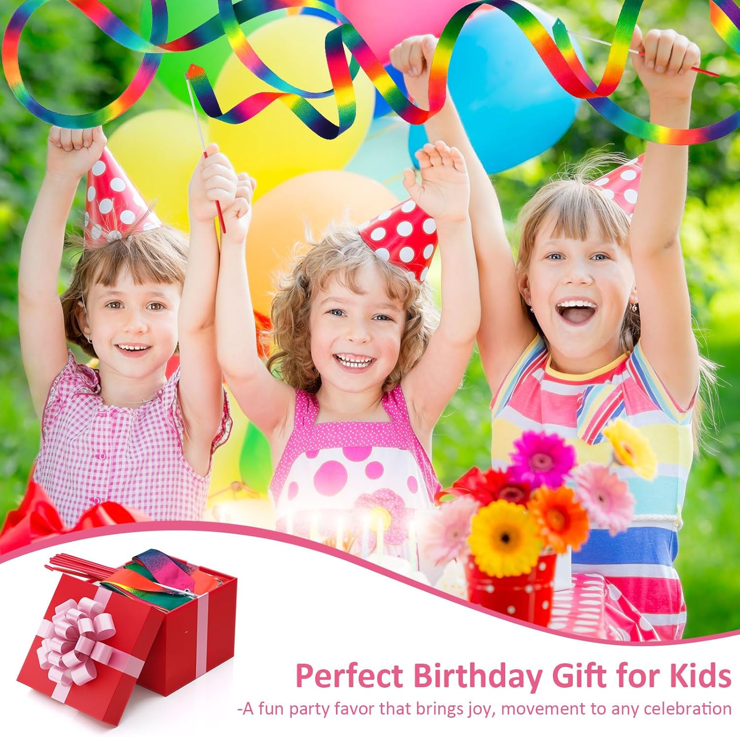 • Ideal Size for Play: The dance ribbons measures 78.7 in (200 cm), and the wand is 11.8 in (30 cm ), offering an ideal size for kids and adults to dance, twirl