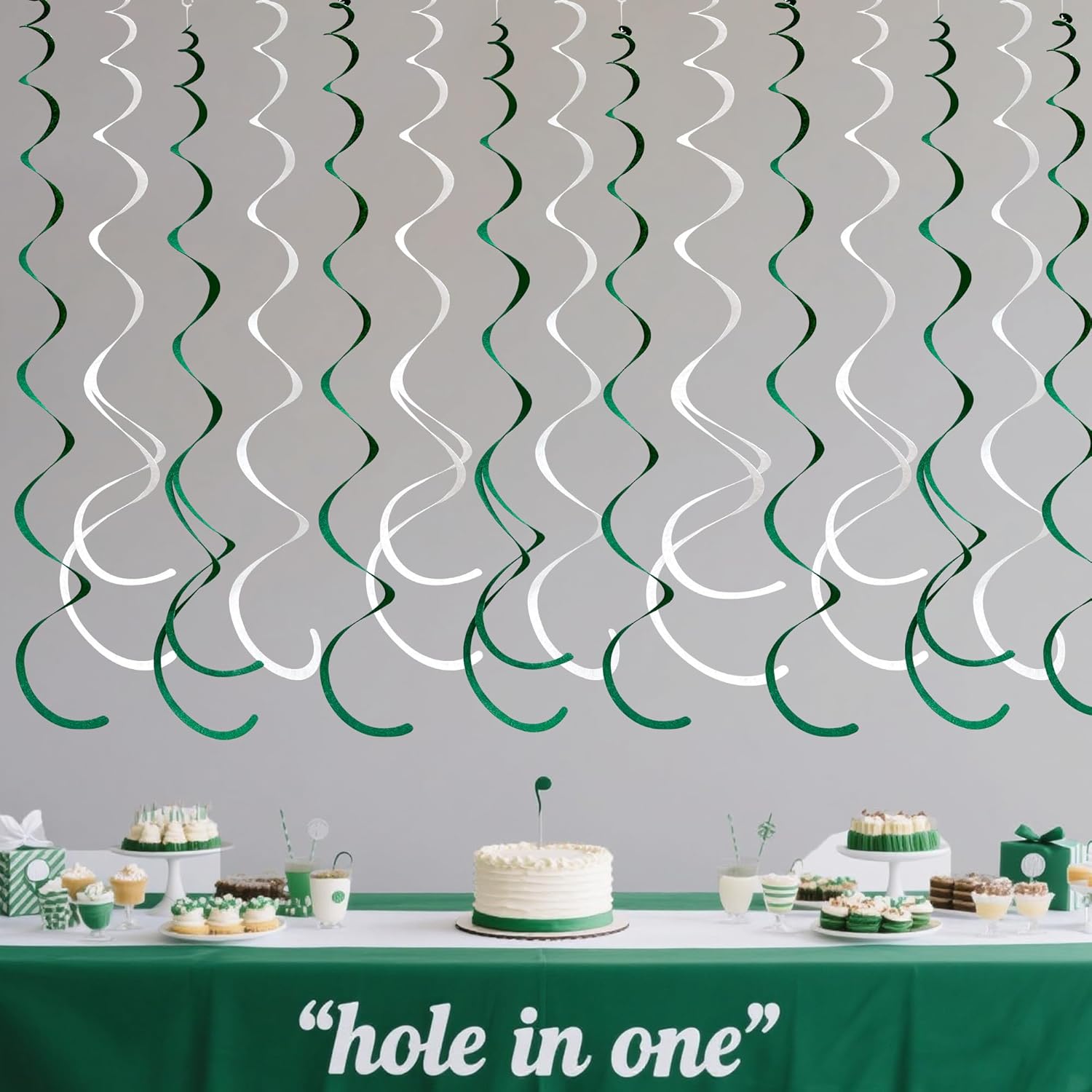 36 Pcs Green White Hanging Swirl Decorations Felt Swirl Streamer Spiral Ceiling Garland for Birthday Graduation Wedding Retirement Baby Shower Spring Summer Christmas Masters Golf Party Decor Supplies