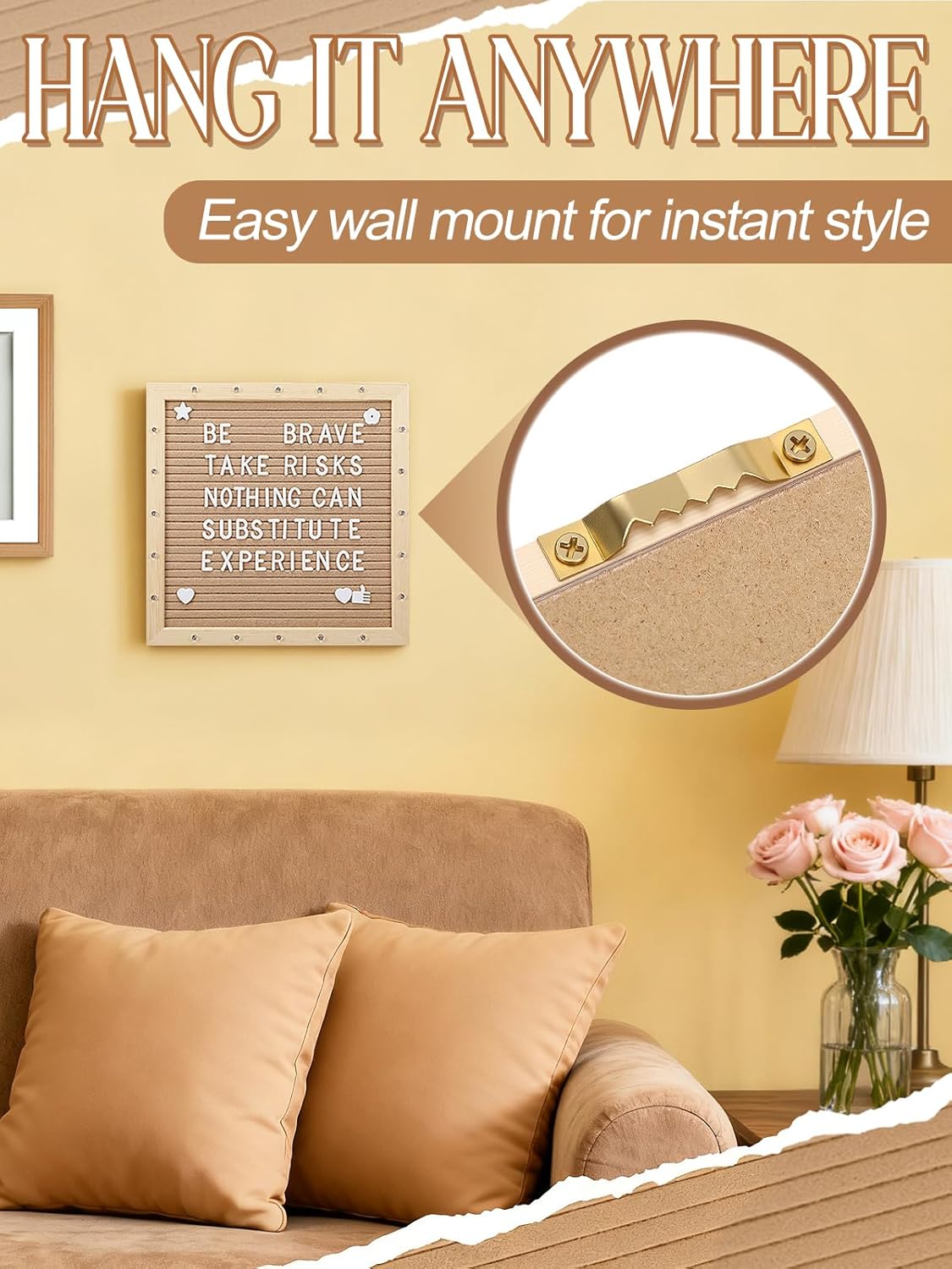 • 2 Ways to Display: You can hang it easily with the hook or place it securely on the included tripod stand. It's eye-catching—ideal for tabletops, mantels, walls, or even front doors. Use it as a name sign, or a decorative to brighten up your space