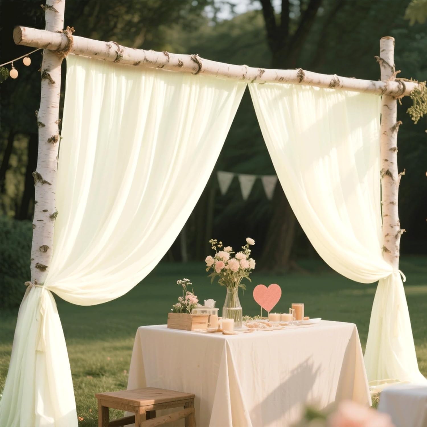 Wedding Arch Draping Fabric 29" x 18 FT Light Yellow Sheer Chiffon Outdoor Curtain Drapes for Wedding Birthday Party Ceremony Decor(2 Panels, Light Yellow)