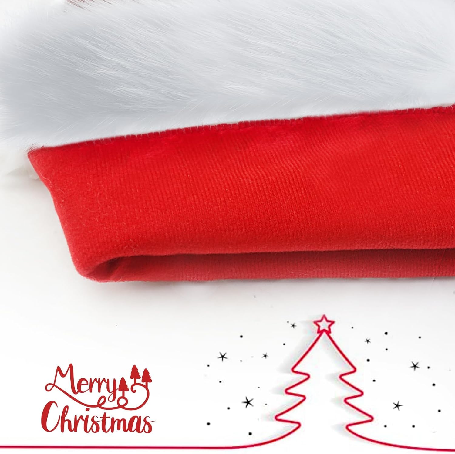 • 🎉 High Quality Soft Comfortable: The adults Santa Hat is Made of High-Quality Plush, Red Velvet Fabric And Double Comfortable Liner Make Kids Santa Hats Soft And Good Touch Feeling, The Santa Hat With Thickened Design Lining Can Keep Warm in Cold. Soft Comfortable Fabric to Protect Your Head And Hair Without Irritation Sweat Also Not Feeling Itching, Hand Washable, Not Allergic.