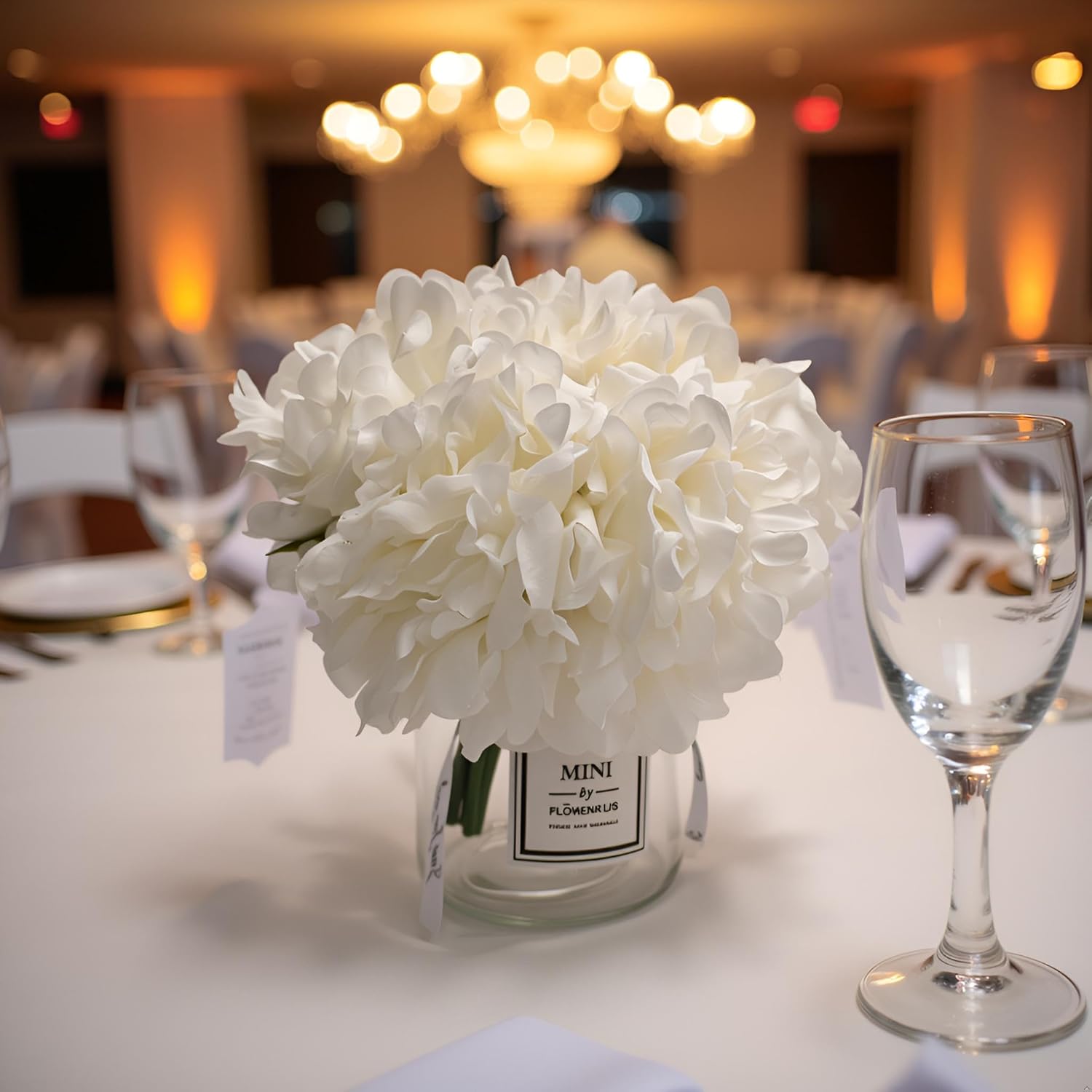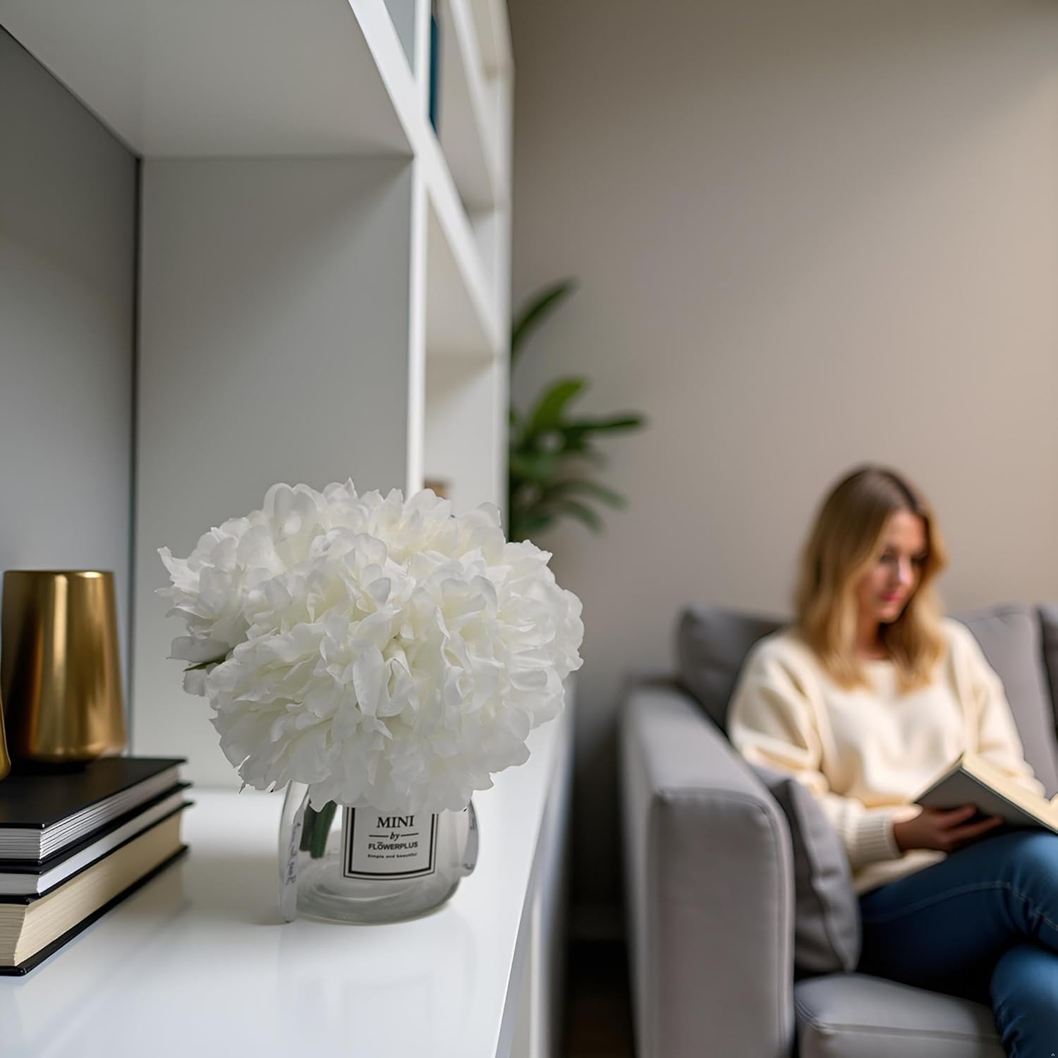 • ELEGANT DESIGN: White artificial peonies arranged in a minimalist glass vase with decorative ribbon, perfect for modern home decor
