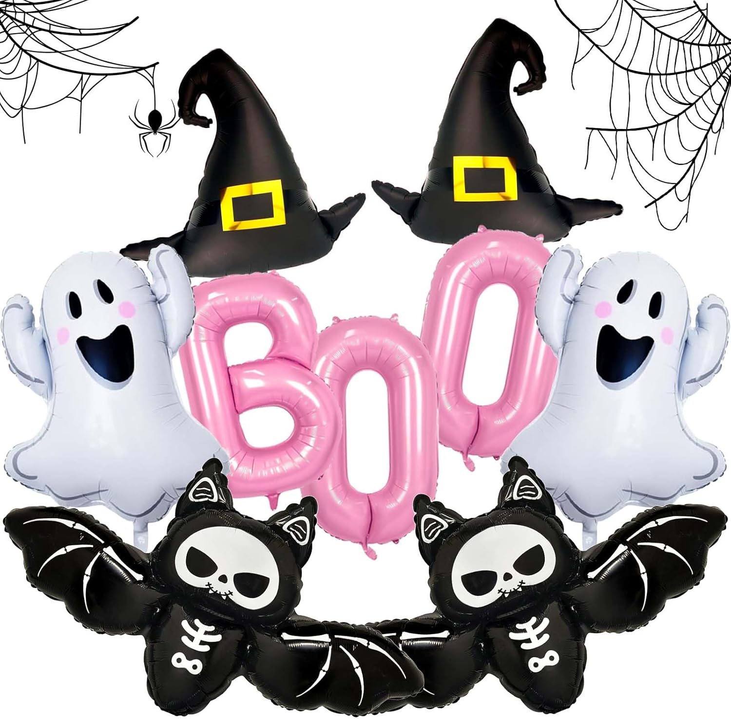 • Iconic Halloween Designs: Features foil balloons with "BOO" lettering, ghost, bat, and Hat shapes to set the perfect holiday mood