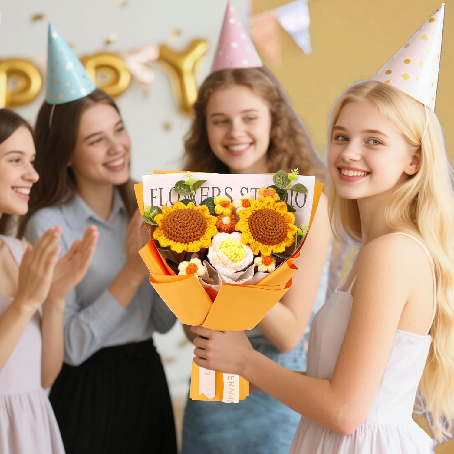 • High-Quality Materials: Each crochet flower is carefully crocheted with high-quality milk cotton yarn, which is soft and skin-friendly, with a delicate and gentle touch. Paired with exquisite high-end packaging gift bags, from the details to the overall design, it highlights the craftsmanship and style, giving every companionship and blessing a gentle and lasting sense of ritual.
