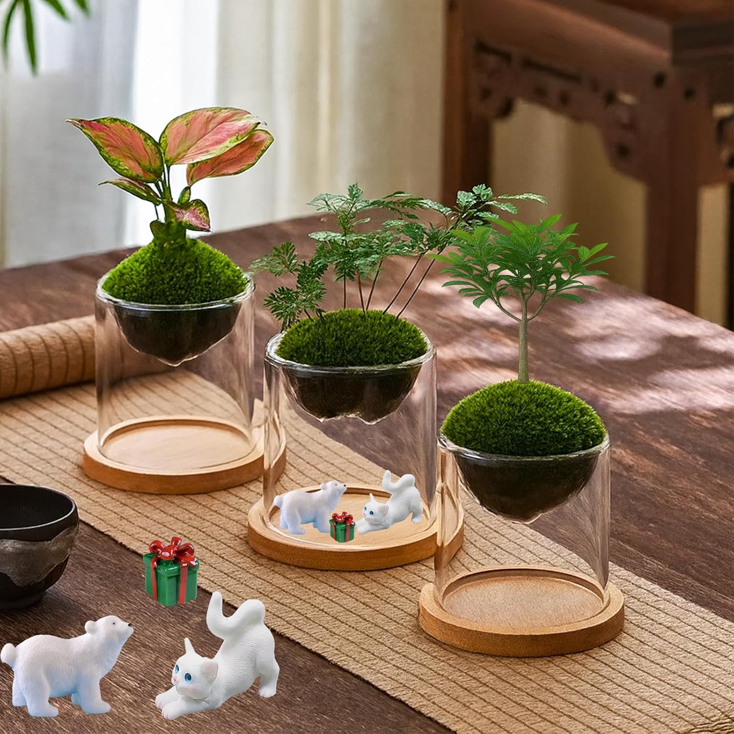 • VERSATILE DESIGN: 4-in-1 glass terrarium functions as a propagation station, herb garden, hydroponic planter, creating decorative plant displays, DIY decor for garden, home, office, kitchen and bathroom, decorative vase with wooden base for multiple growing options, suitable for Herb, Small Bonsai, Moss, carnivorous plant, pothos live plant, Fresh Herbs, fern, houseplants