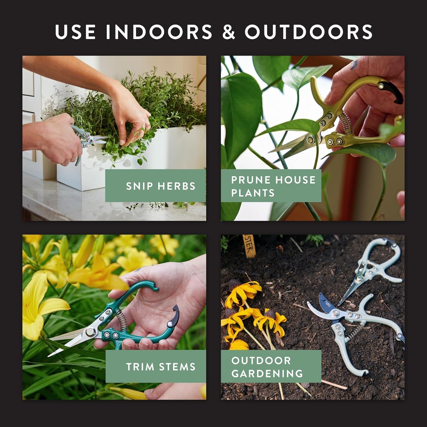 • Package Contents: 4 Units of Modern Sprout Pruning Shears (6" X 3") - Chartreuse, Sage, Lavender, and Ocean