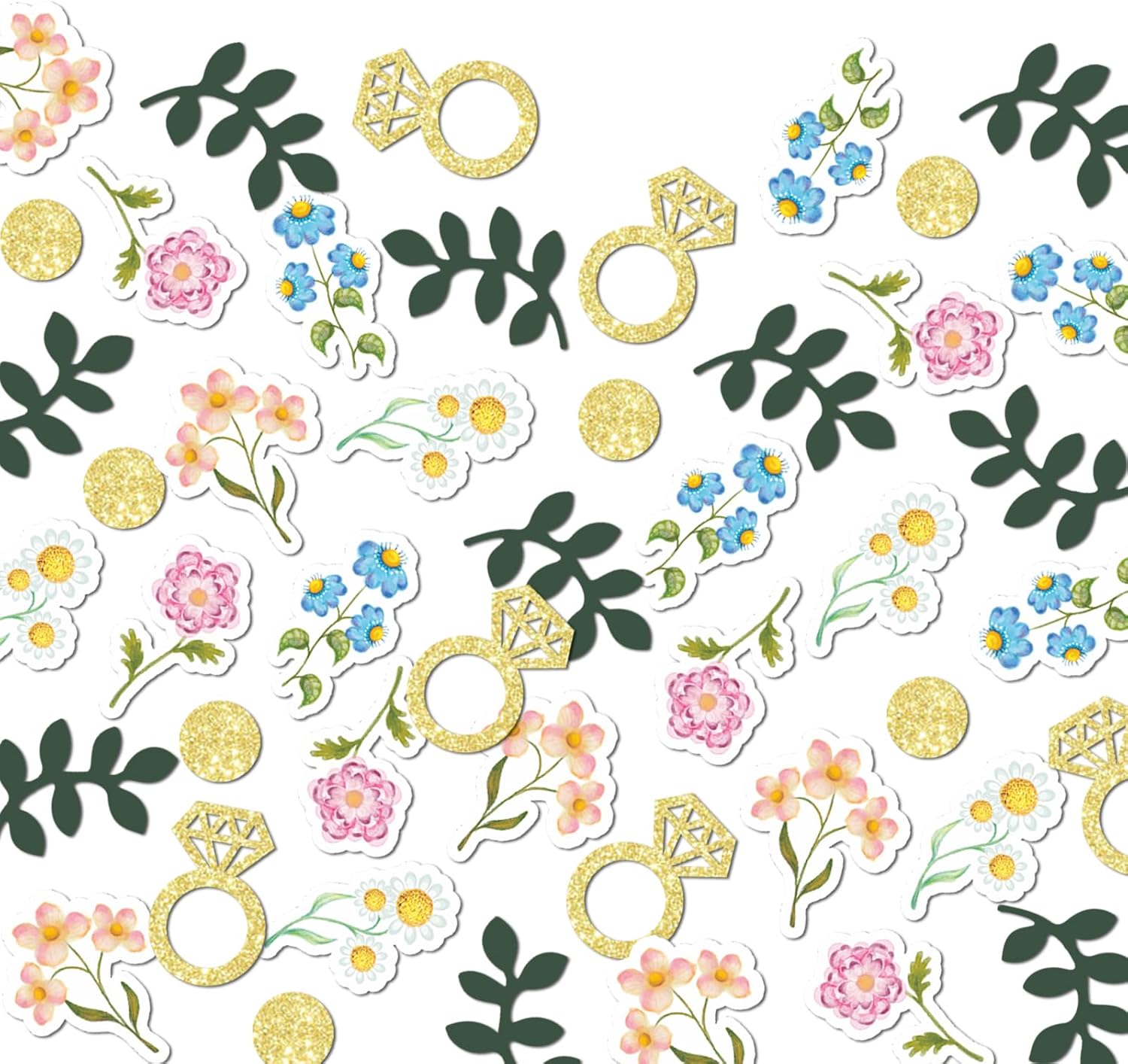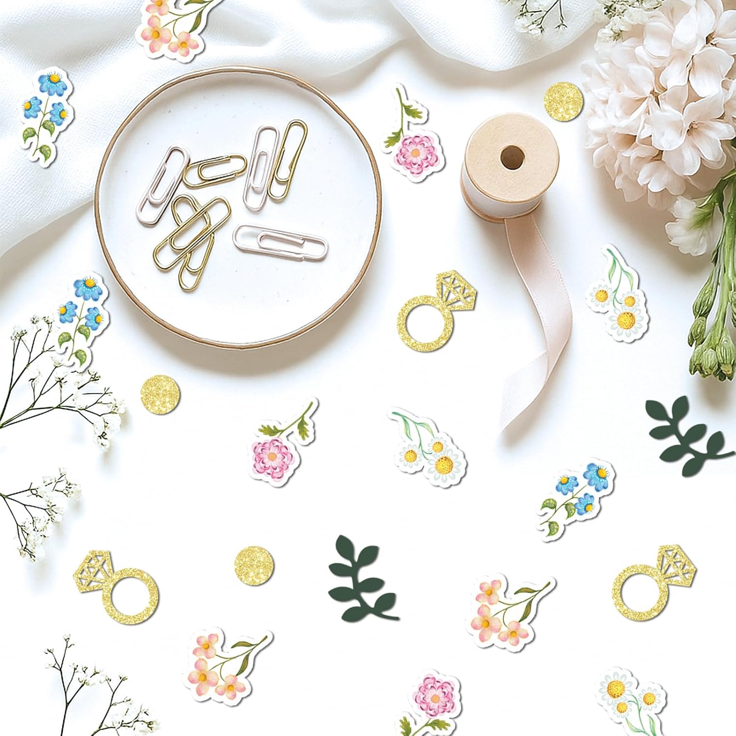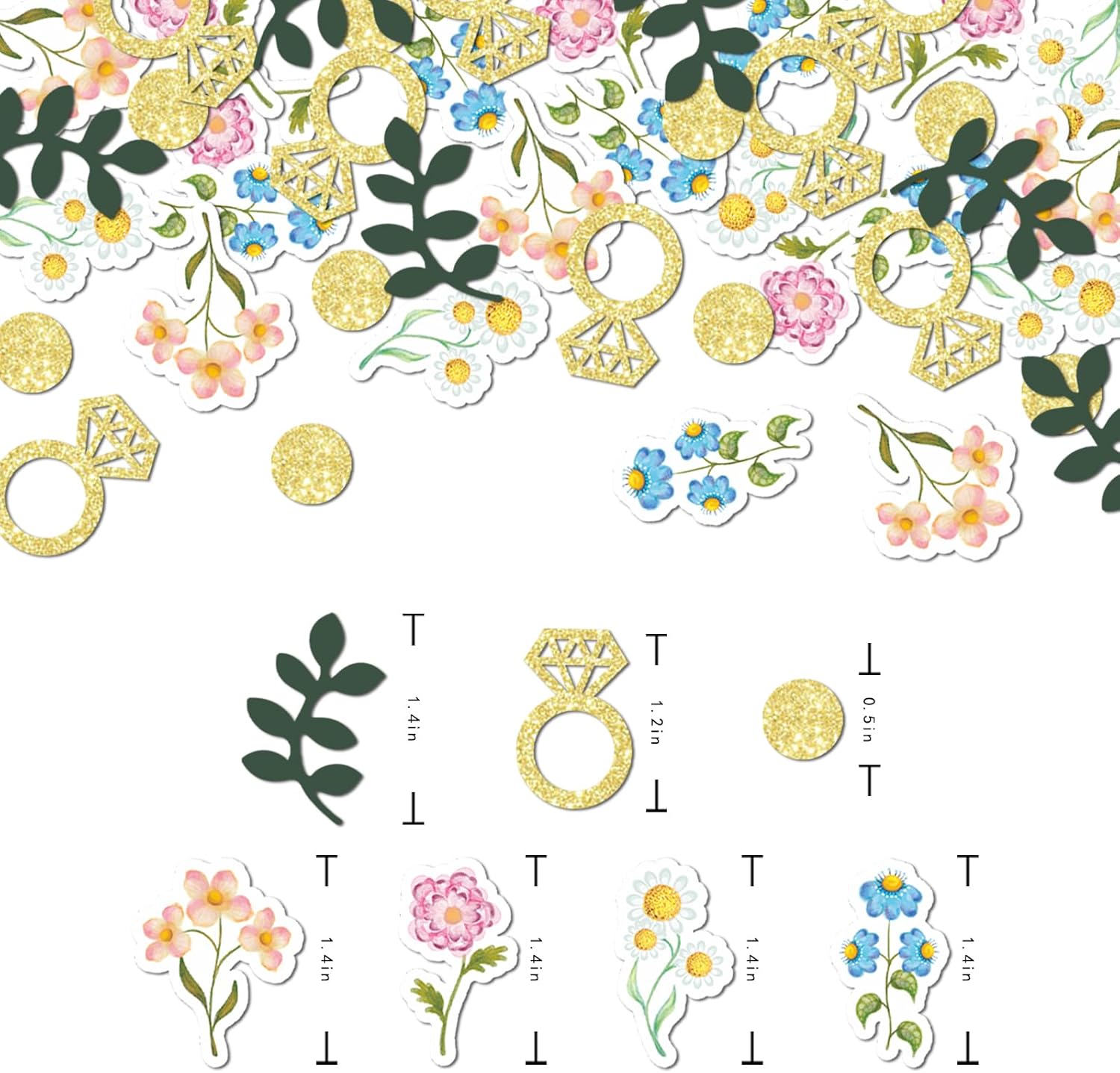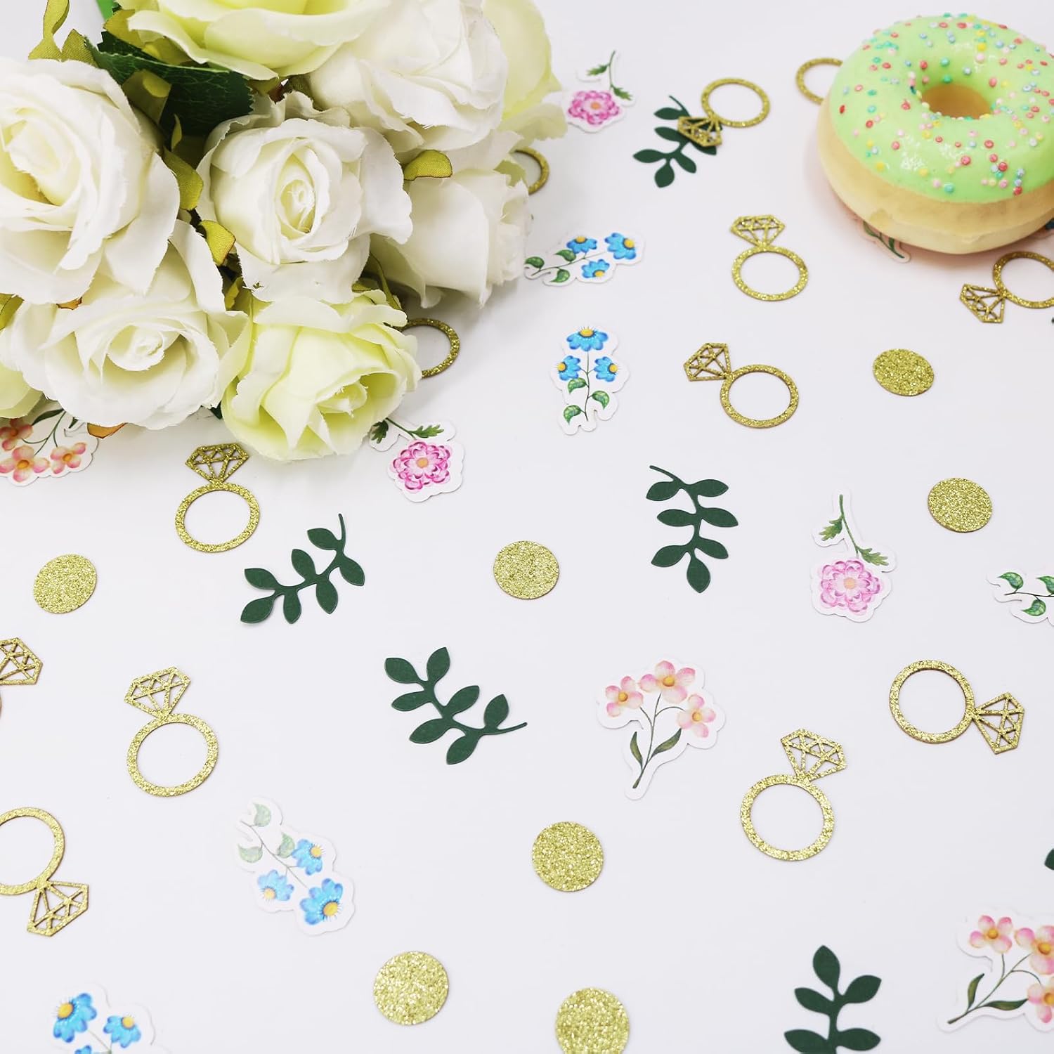 • Great Addition to Your Bridal Shower Party: The gold diamond ring and wildflower bride confetti are very eye-catching and a perfect addition to your wedding party,engagement party,bridal shower, bachelorette party, hen night party, Valentine's Day surprise,couple’s birthday party decor or any romantic love related anniversary party celebration occasion.