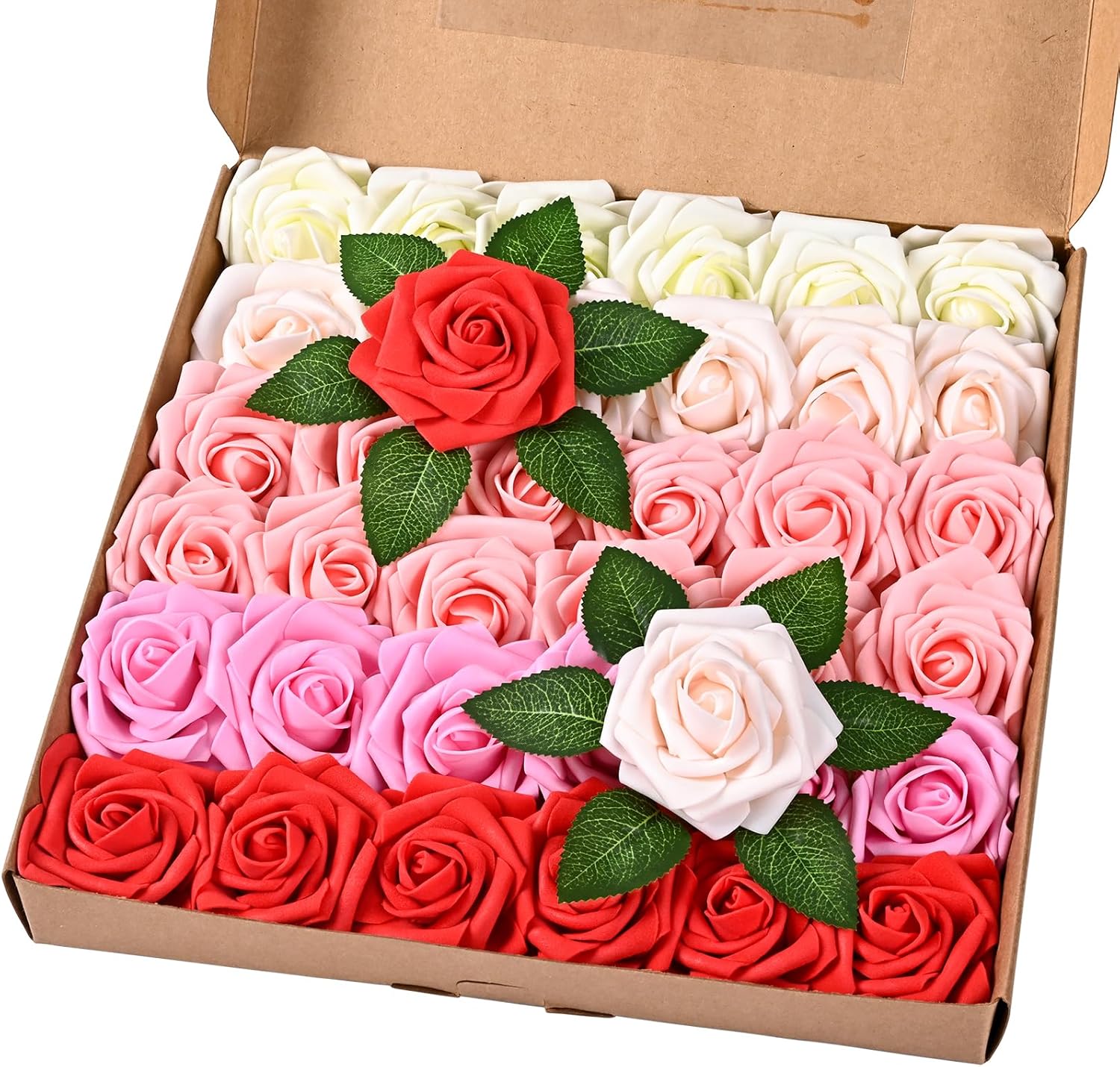• Kindle Your Creative Flames: The box includes 36 gradient red & pink roses (3" flower head, 8" stem) and 8 green rose leaves, perfect for an array of DIY crafts. Whether creating wedding bouquets, graduation or birthday party ornaments, baby shower decorations, or cake adornments, our faux roses add a touch of class to every important moment.