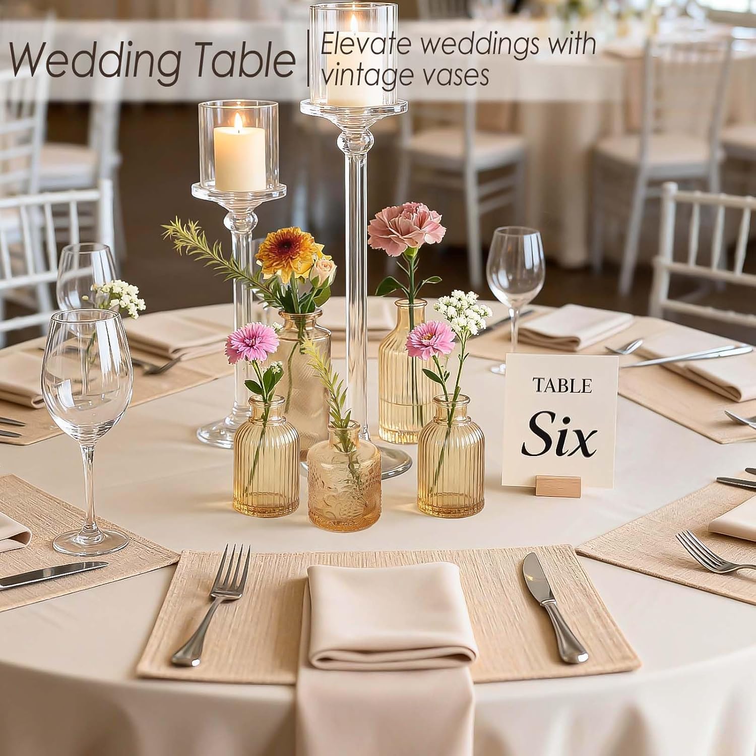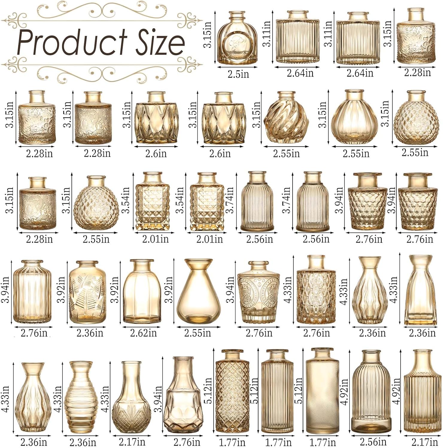 Amber Glass Bud Vases Set of 36, Mini Flower Vase for Centerpieces, Small Gold Bud Vases in Bulk for Wedding Decorations, Vintage Vase for Table, Recepetion, Home Décor