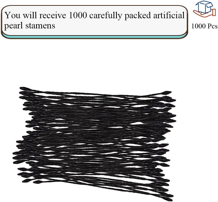 HAHIYO 1000Pcs 1mm Black Pearl Double Head Flower Pistil for Flower Making Scrapbook Decoration Mini Handmade Artificial Pistil Pearlized Floral Stamen Pollen
