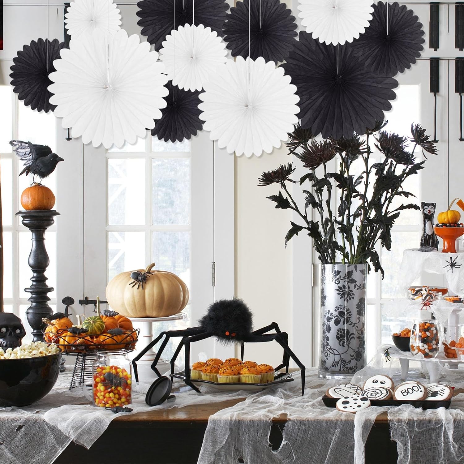 20 Pcs Black White Hanging Paper Fan, Hanging Honeycomb Round Paper Fans for Weddings, Birthdays, Christmas, Baby Showers, Classroom, Events Ceiling Party Supplies Decorations