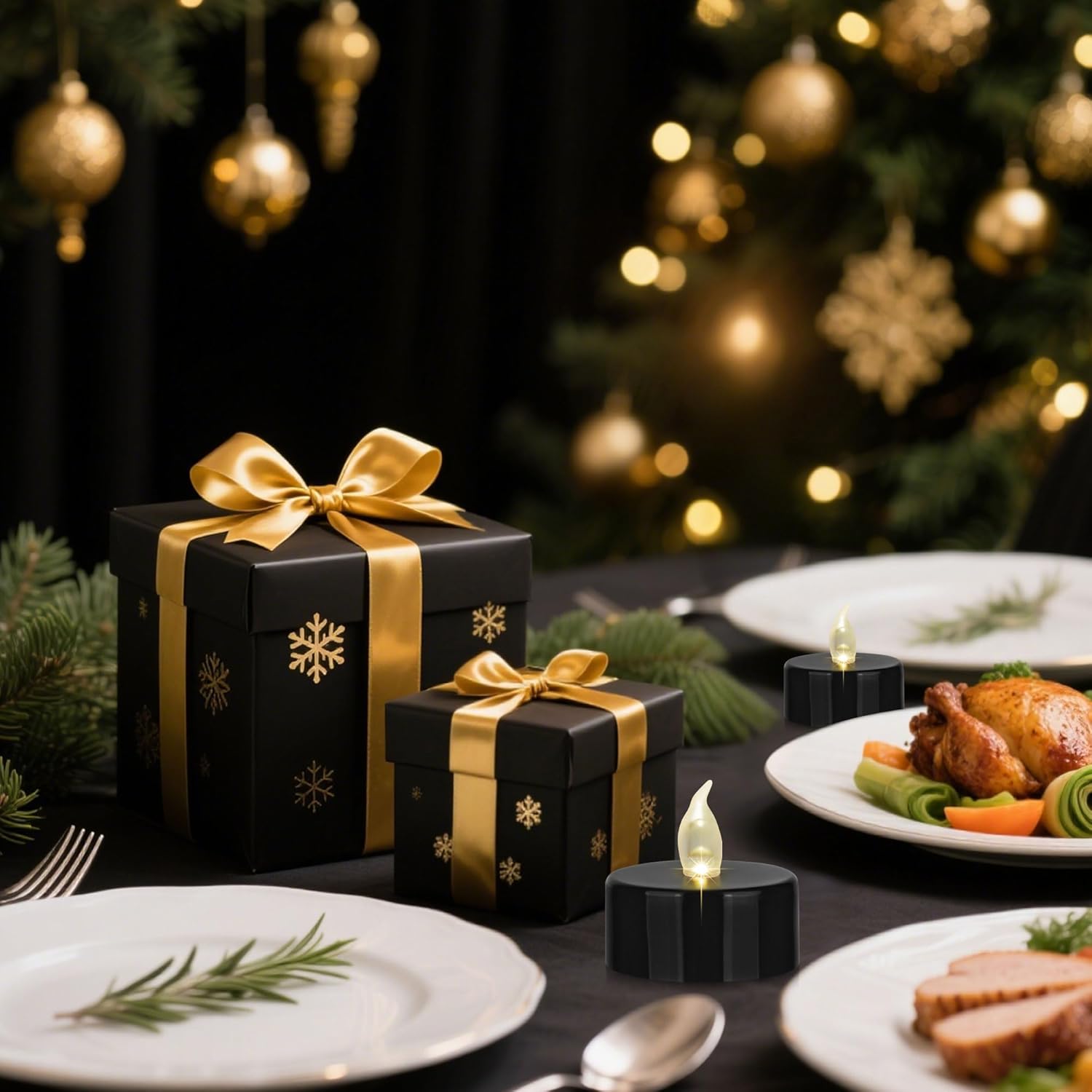 Nancia 24PACK Flameless LED Tea Lights Candles, Realistic and Bright Flickering Long Lasting 200Hours Battery-Powered, Ideal Party, Wedding, Birthday, Gifts Home Decoration Black