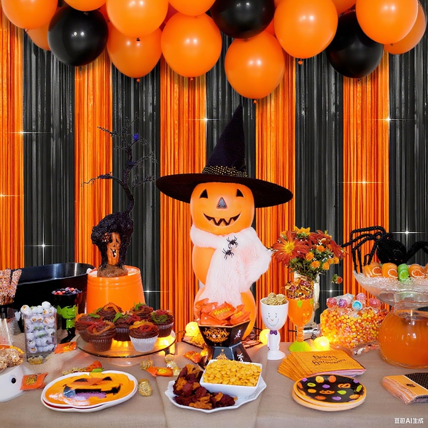 • High Quality Materials: These Orange and Black backdrop curtains are made of aluminum foil, safe, environmentally friendly and reusable, that is safe for both adults and your kids! The metal foil backdrop creates a shimmering effect that adds a touch of glamour and elegance to any event.