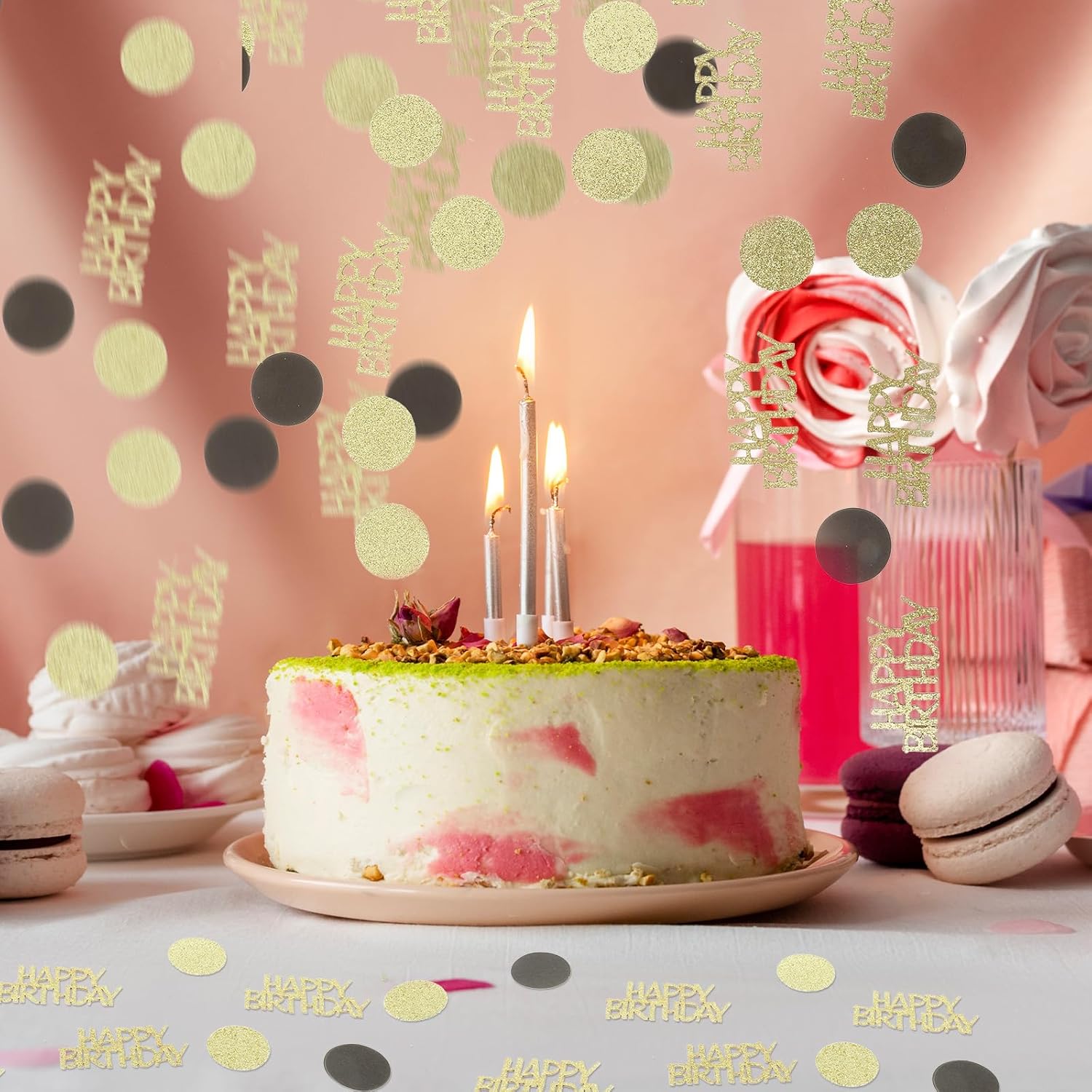 200Pcs Happy Birthday Confetti, Gold Black Birthday Confetti for Table, Metallic Foil Balloon Confettis Scatter Decoration for Party DIY Art Craft